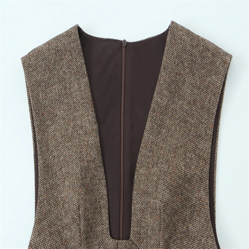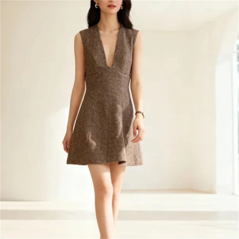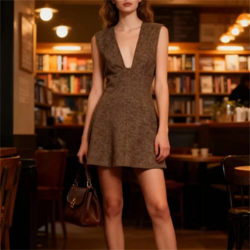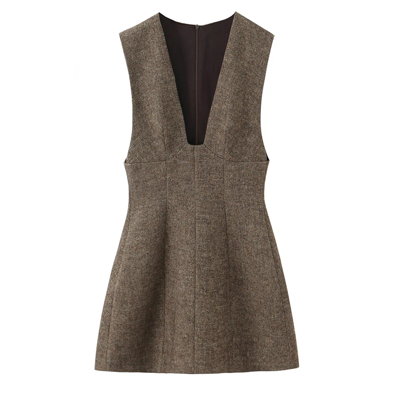 2025 Fall Fashion Trendy Sexy Women's Wool Deep V-Neck Short Dress