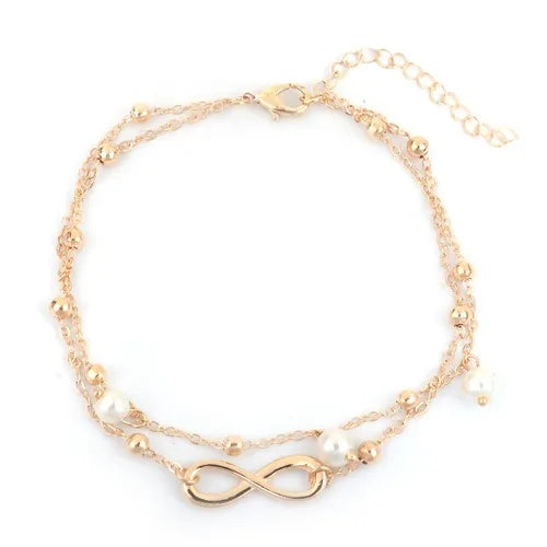 2021 Boho Female Double Layered Anklets Barefoot Sandals Imitation Pearl Foot Jewelry Anklets For Women On Foot Ankle Bracelets