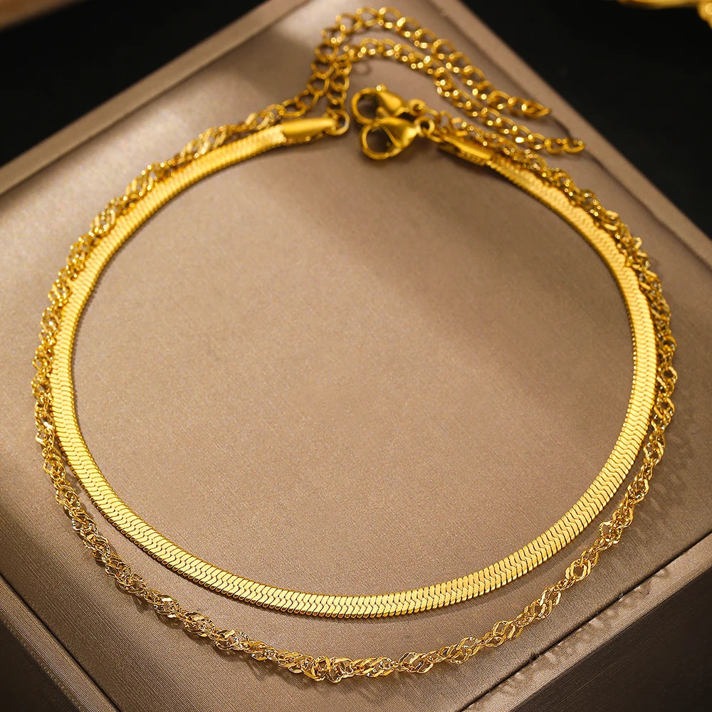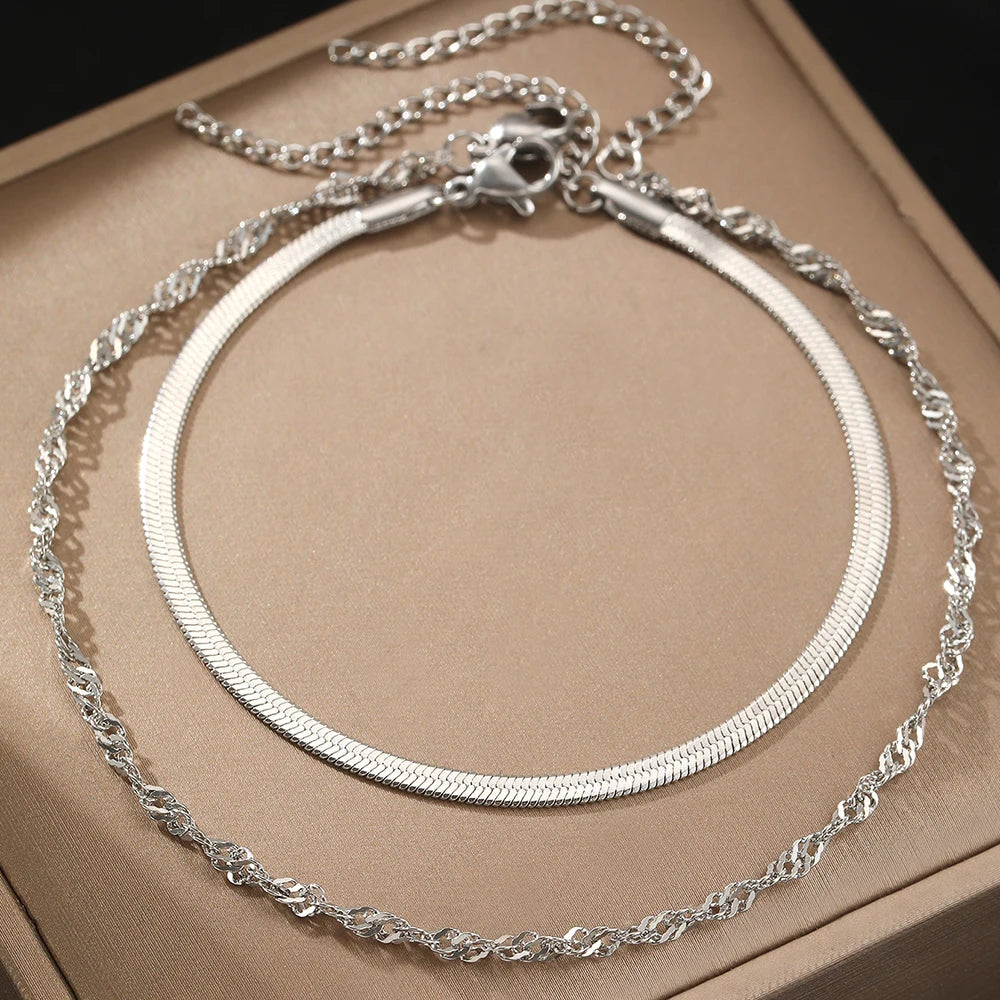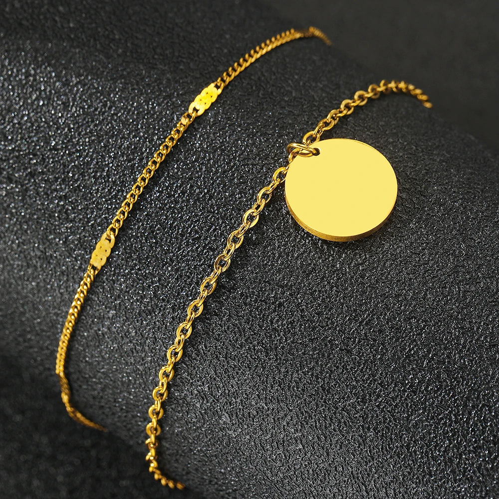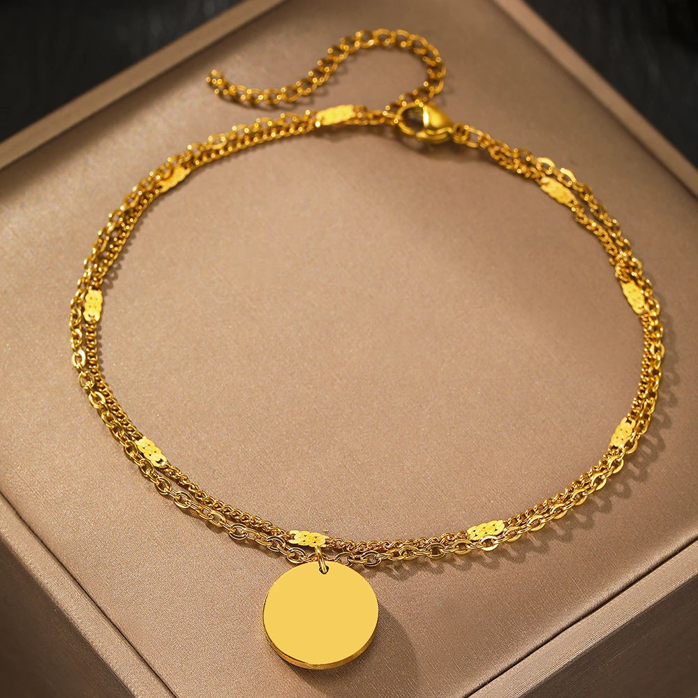 Stainless Steel Anklet Simple Popular Multi-Layer Chain Lovely Carved Delicate Anklet For Women Jewelry Party Gifts Daily Wear