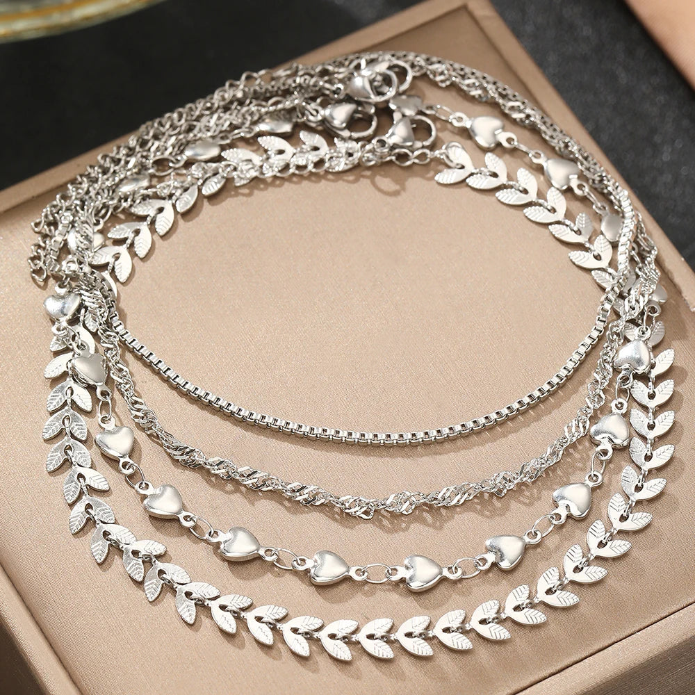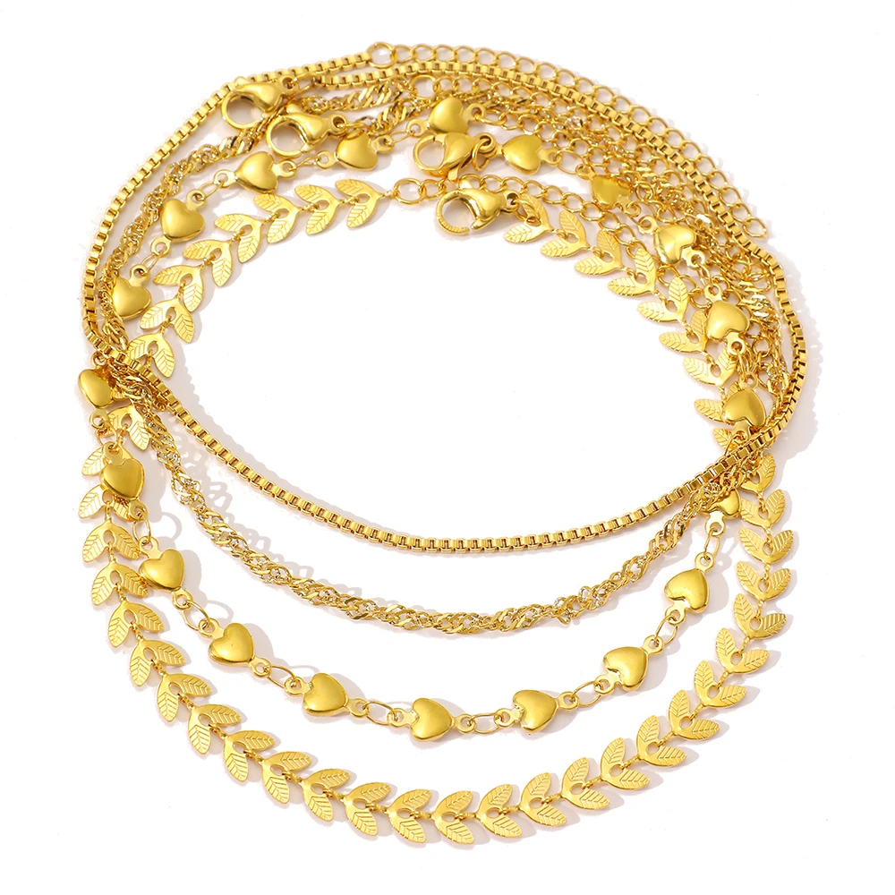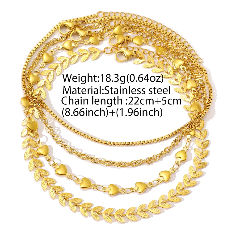 Stainless Steel Anklets Multi Chain Combination Fashionable Atmosphere Peach Blade Anklets For Women Jewelry Popular New Design