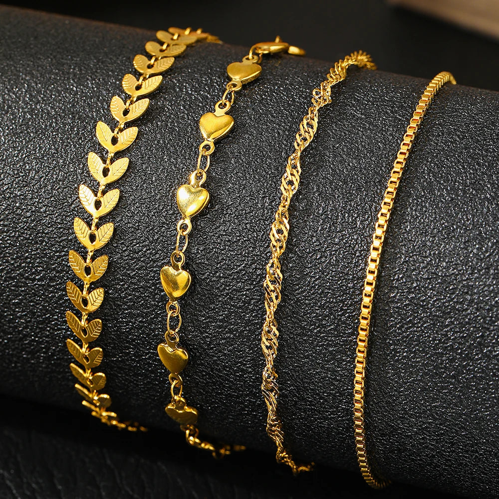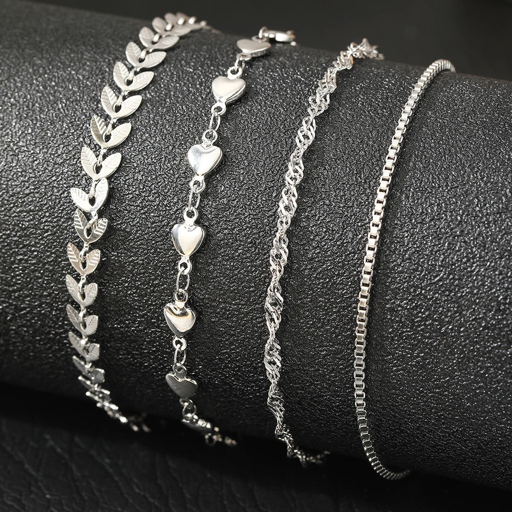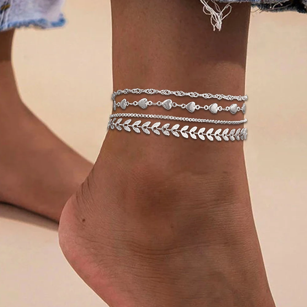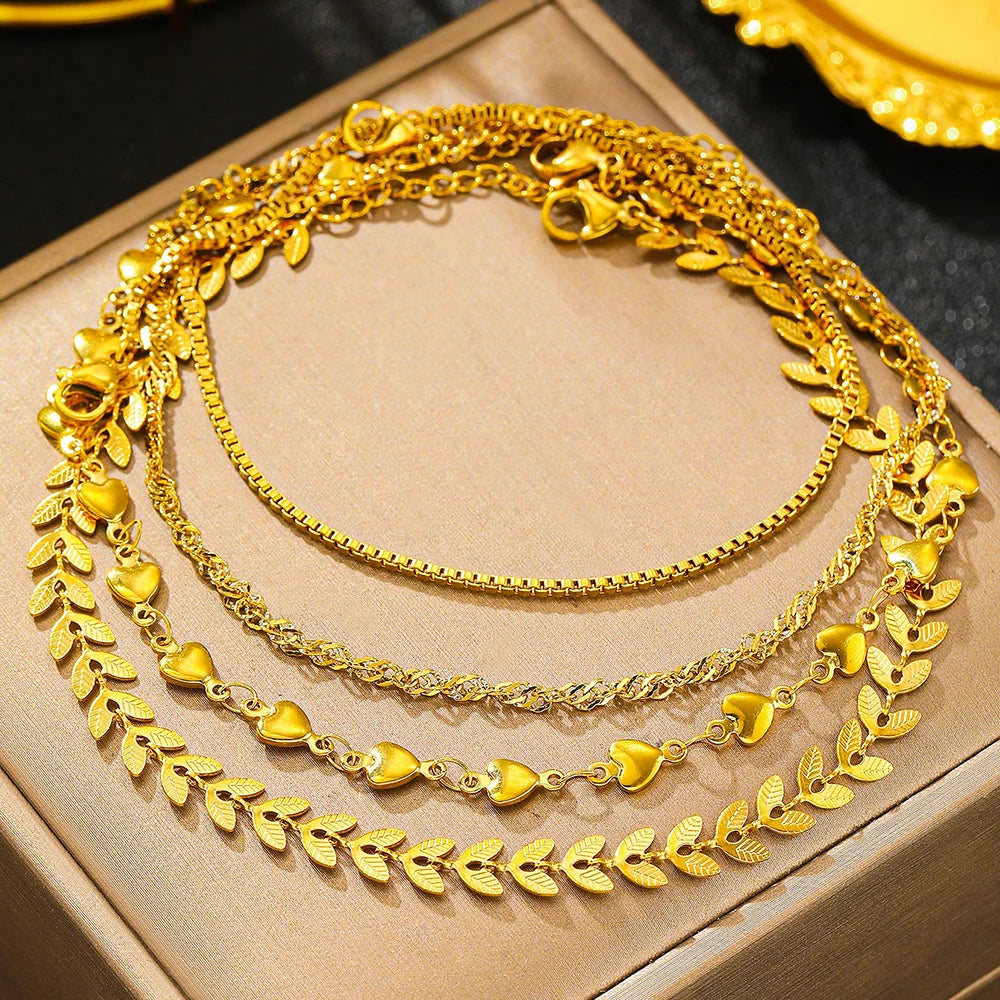 Stainless Steel Anklets Multi Chain Combination Fashionable Atmosphere Peach Blade Anklets For Women Jewelry Popular New Design