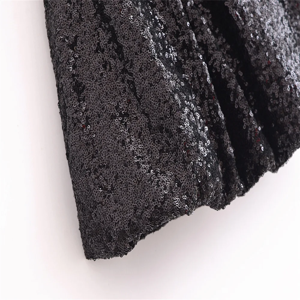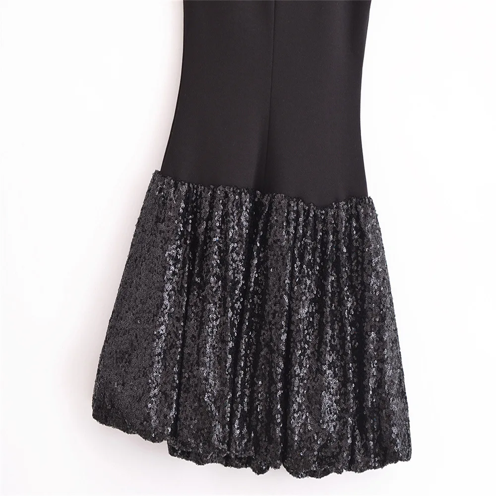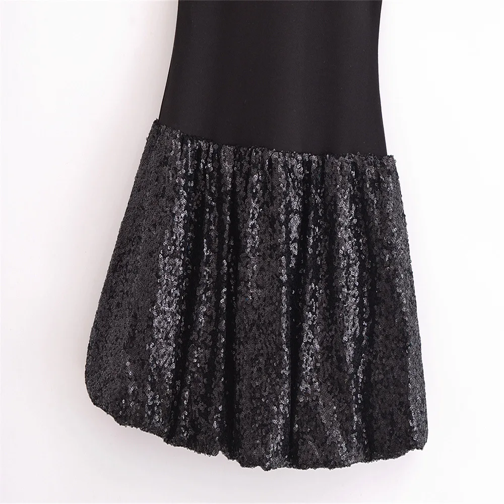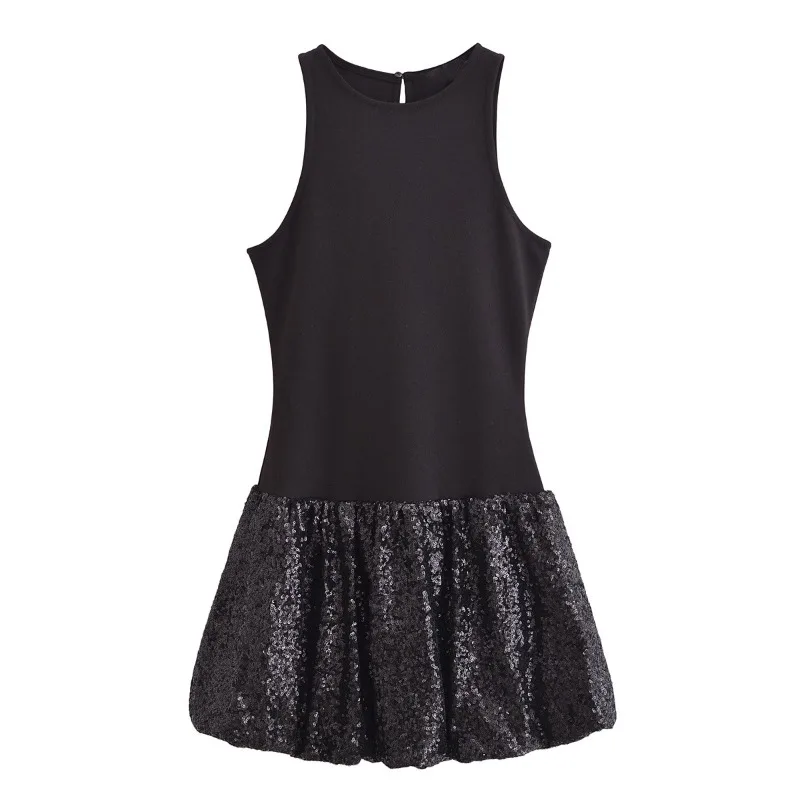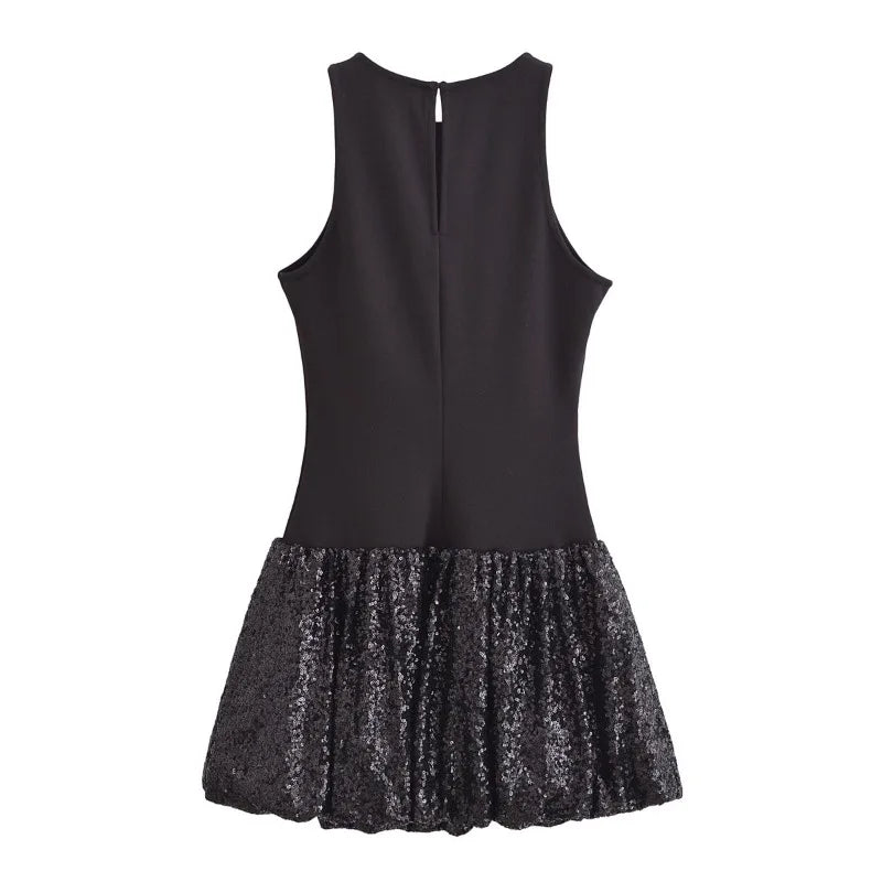 Fashion Party Dress for Women Fashion Autumn Winter New Round Neck Sleeveless Sequined Patchwork Chic Female Evening Clothing