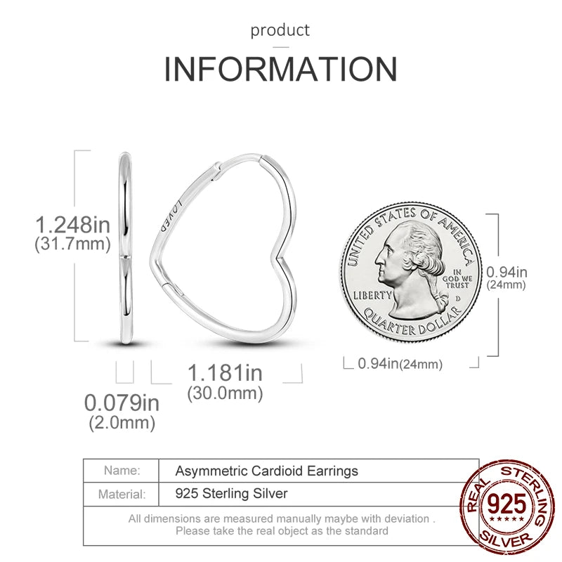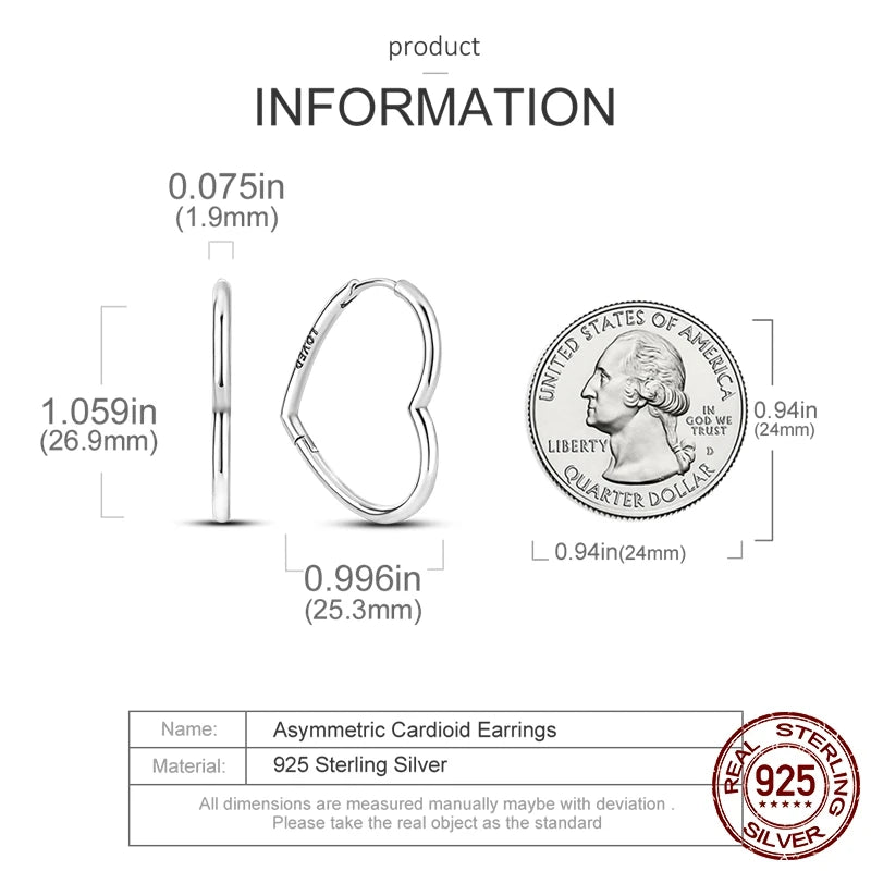 925 Silver Asymmetrical Heart Hoop Earrings β Trendy Sterling Silver Earrings for Women | Fashion Jewelry Gift