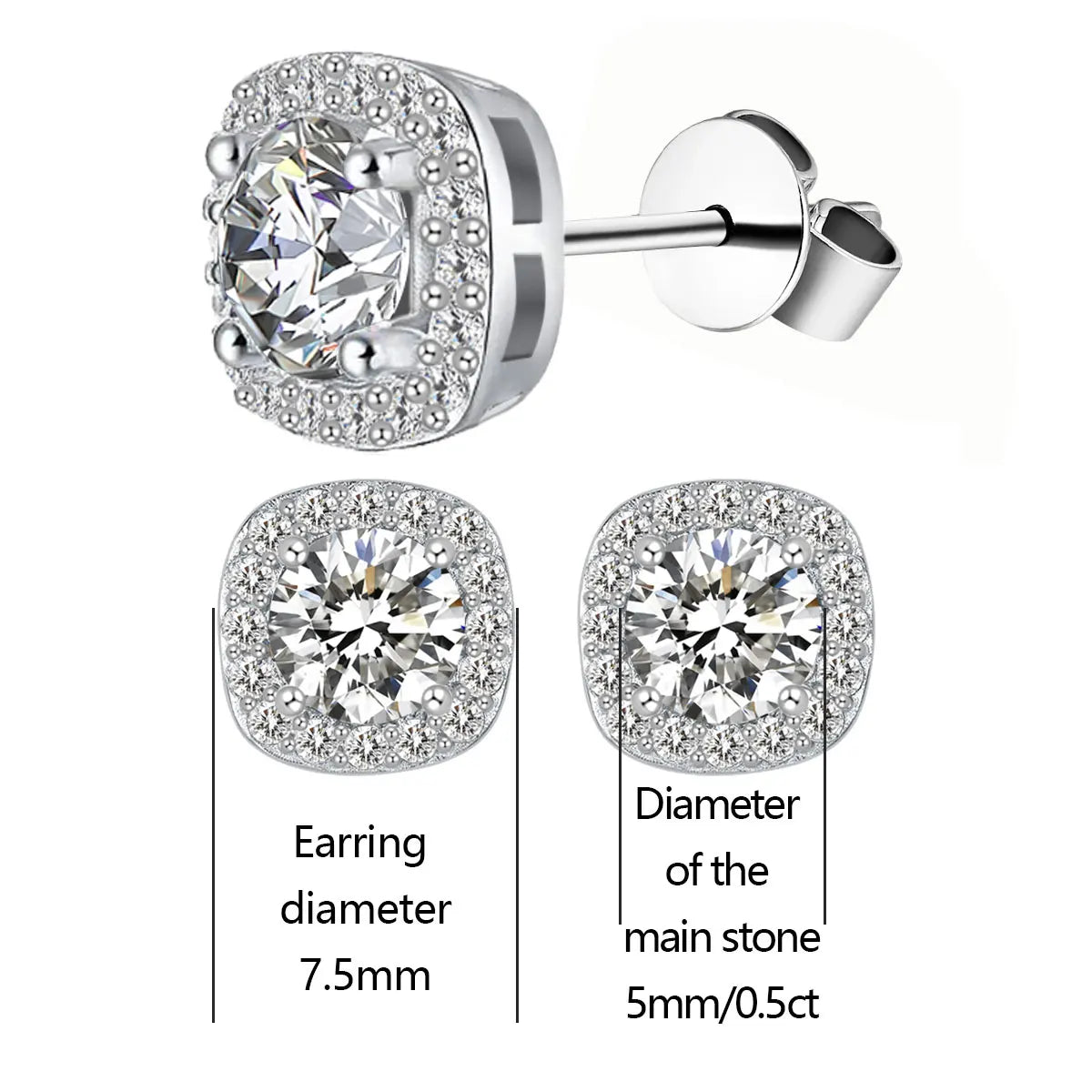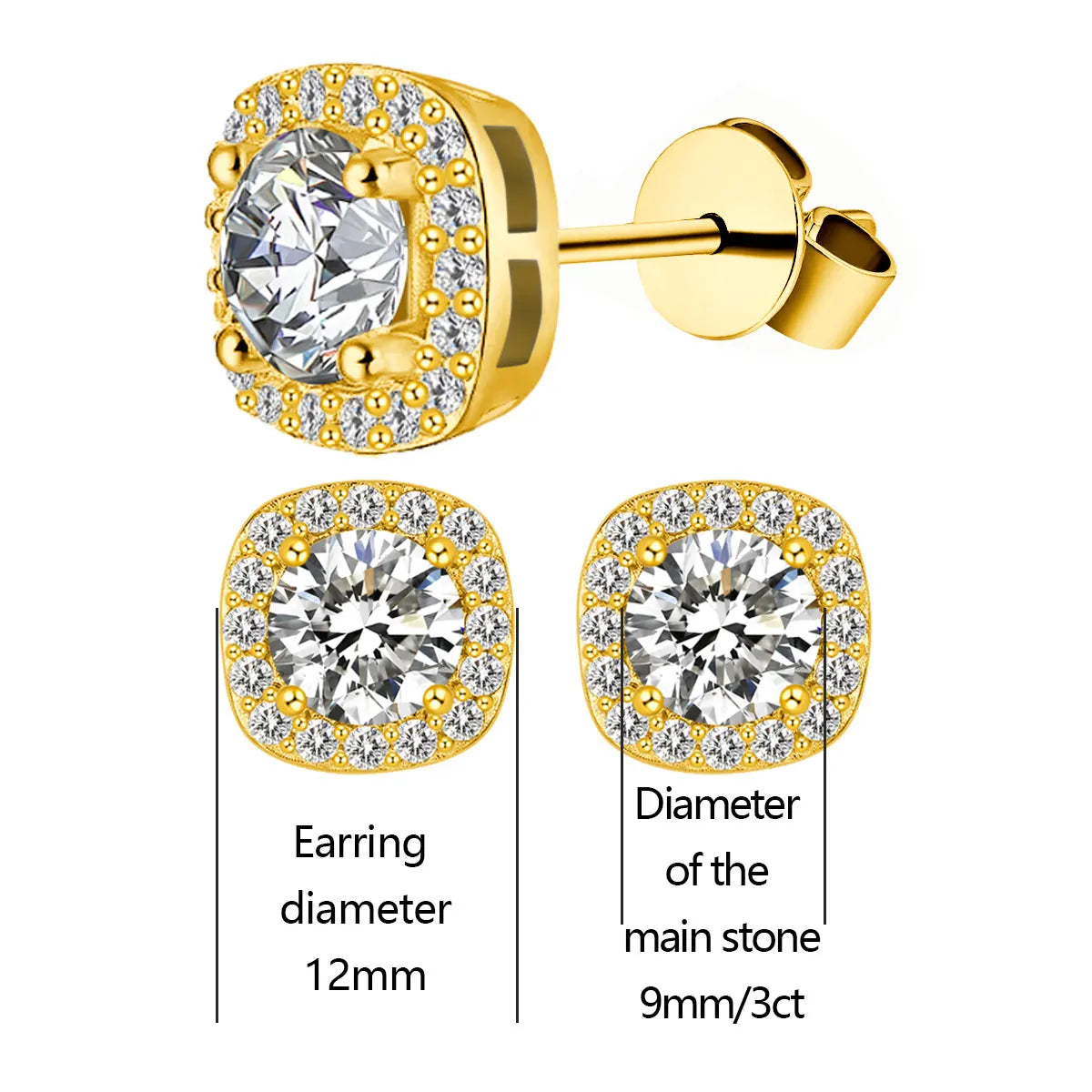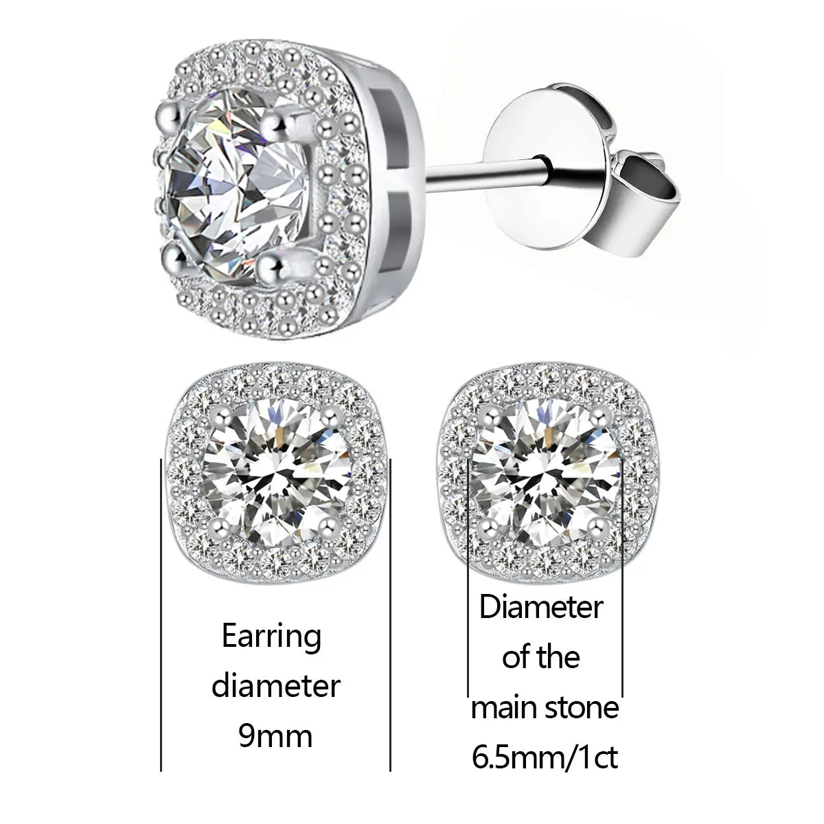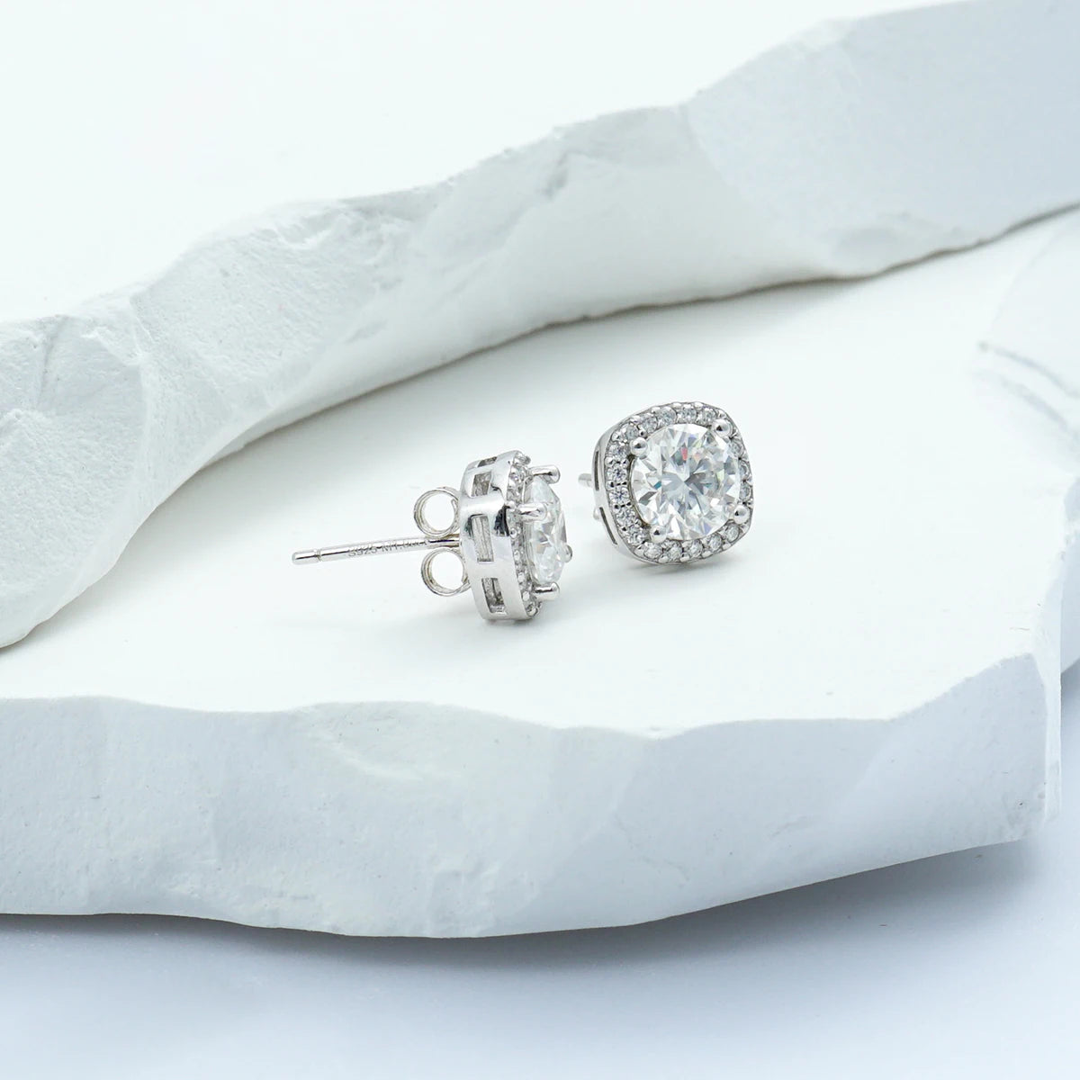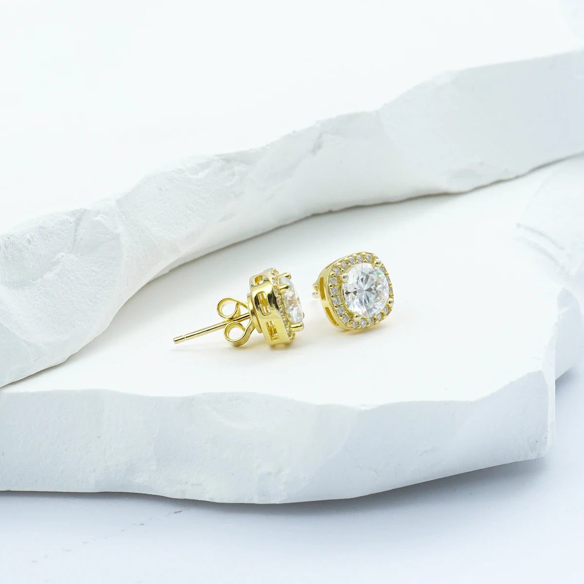 Full-Paved Square-Frame Round Moissanite Earrings β S925 Silver Drop Earrings for Men & Women | Gold & Silver Studs