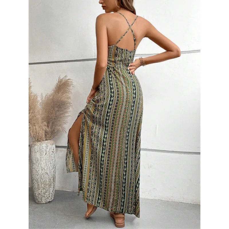 Female Clothing Dresses For Woman Spring And Summer New Women's Fashionable Suspender Print Beach Slit Dress High Waist Slimming