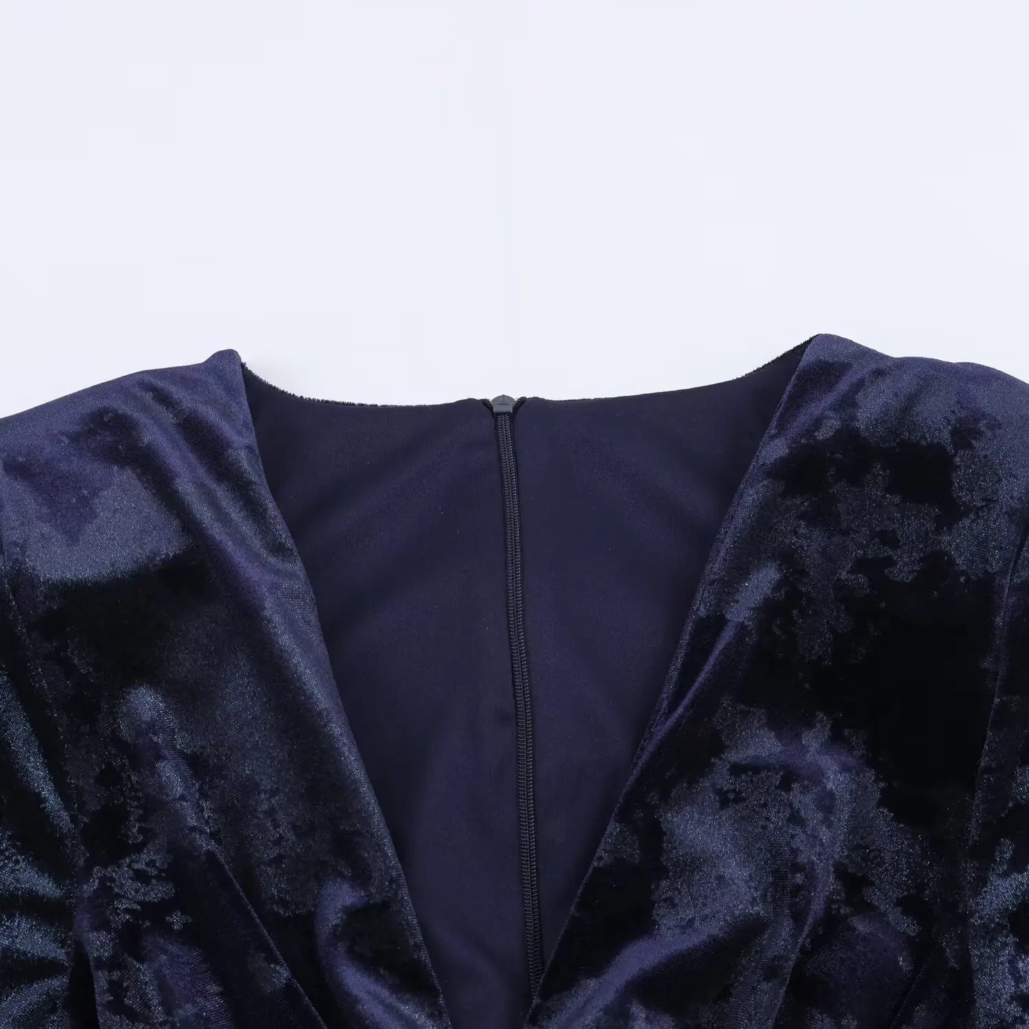 Women's Fashion High Waist Elegant Sexy Dress Waist-Defining Slim V-Neck Long Sleeve Velvet Versatile Party Streetwear Dress