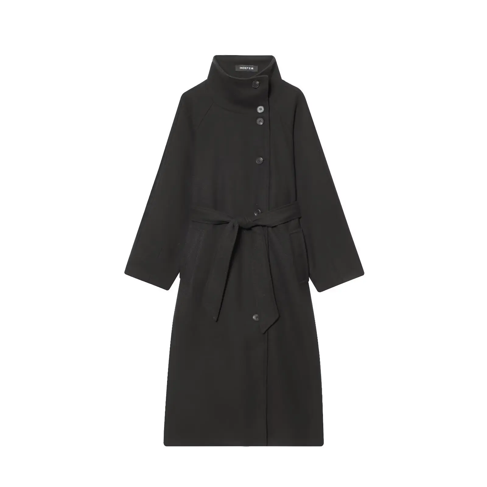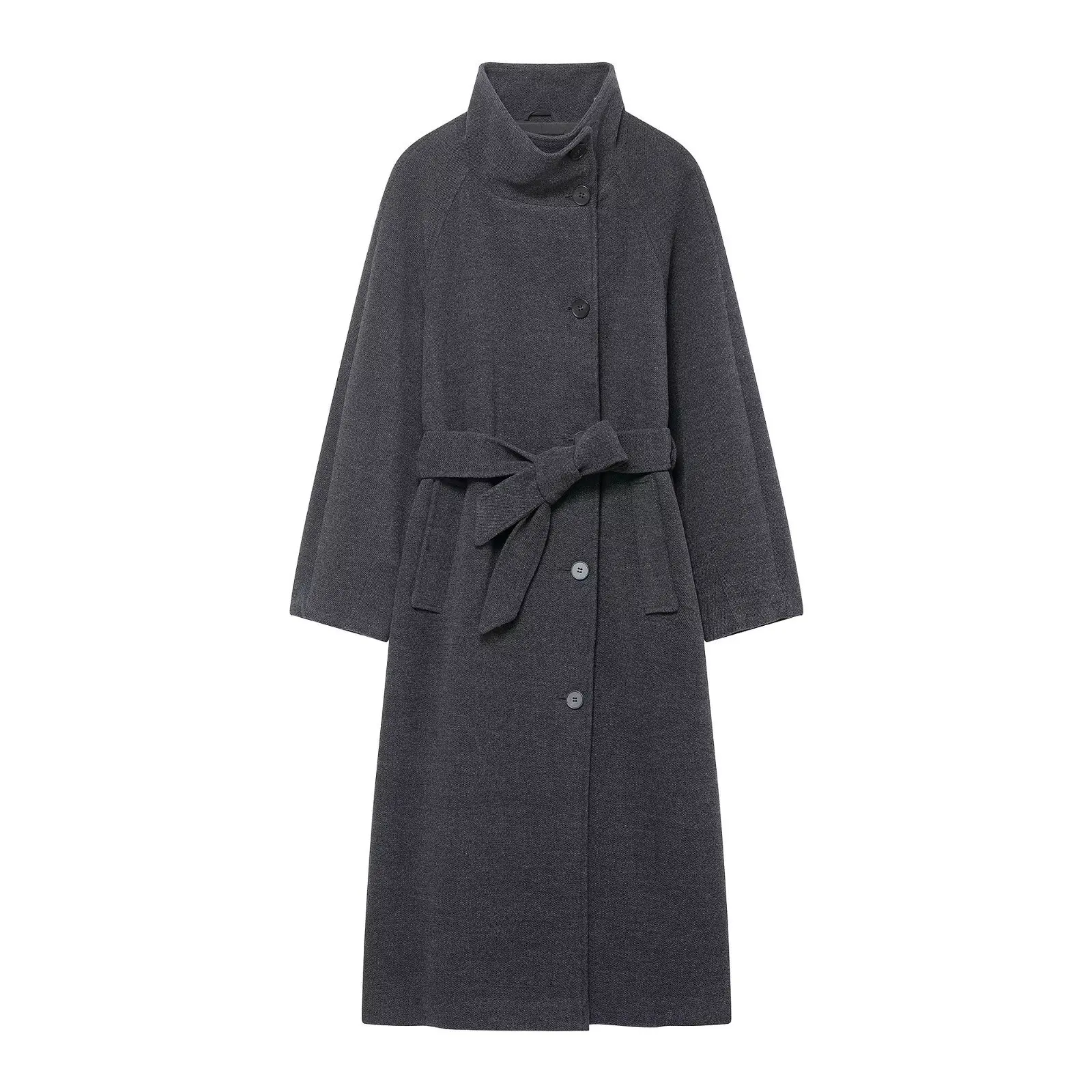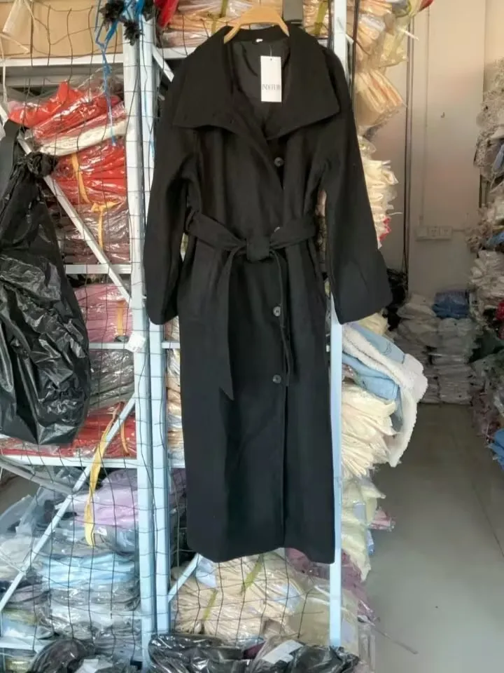 Women's Fashion Loose Coat Winter Retro Simple Classic Stand Collar Belted Outwear Single-Breasted Casual Solid Color Jacket