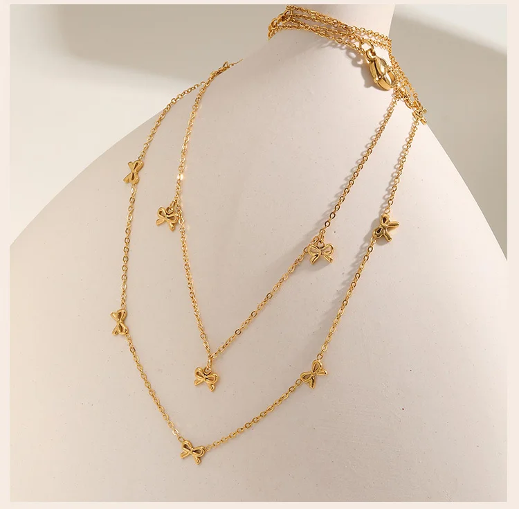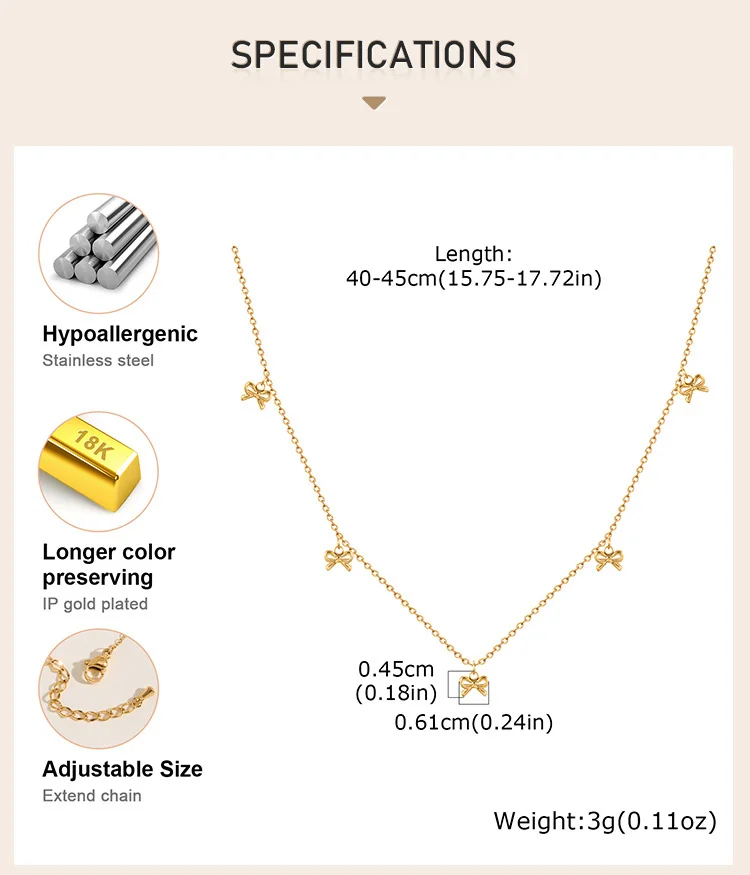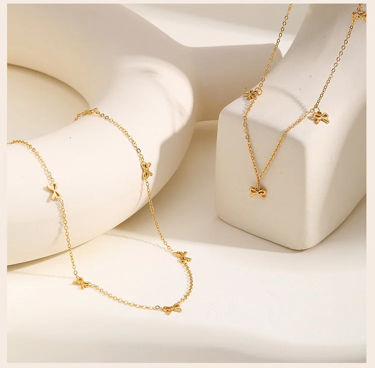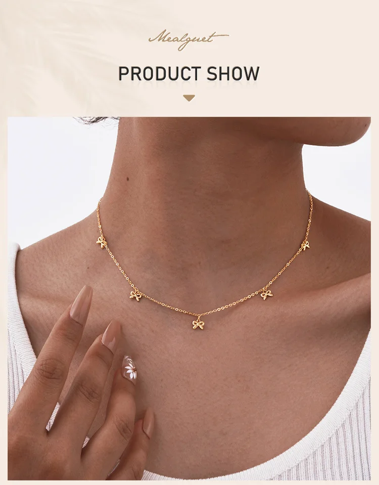 Charms Bow Necklace For Women, Bowknot Chain Choker Necklace, Stainless Steel Thin Link Exquisite Party Jewelry