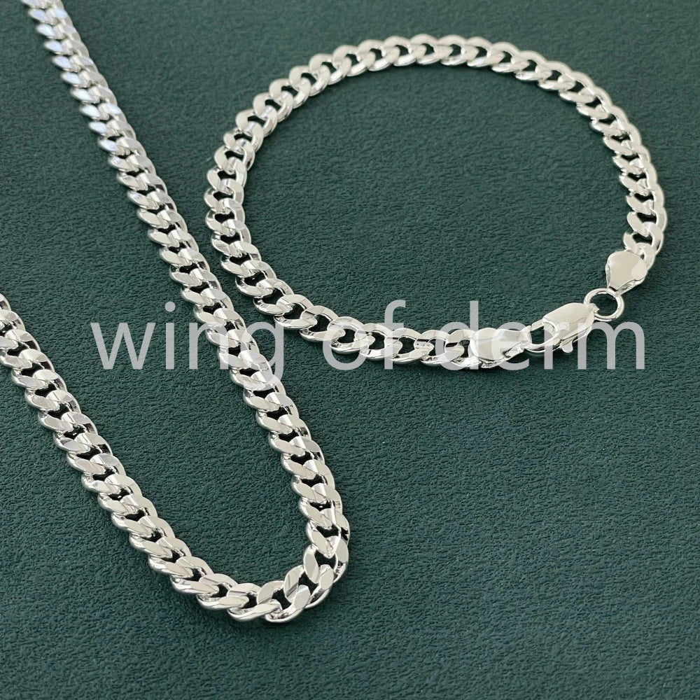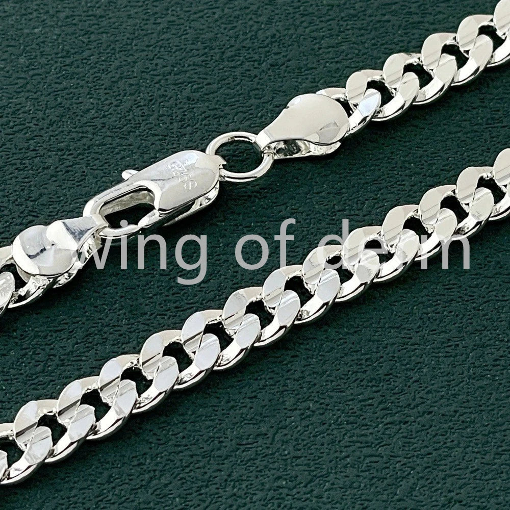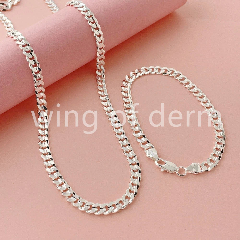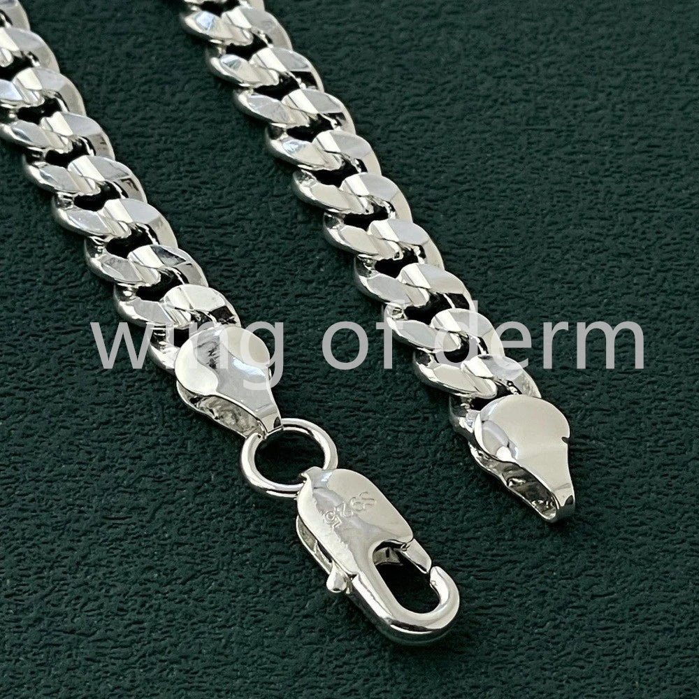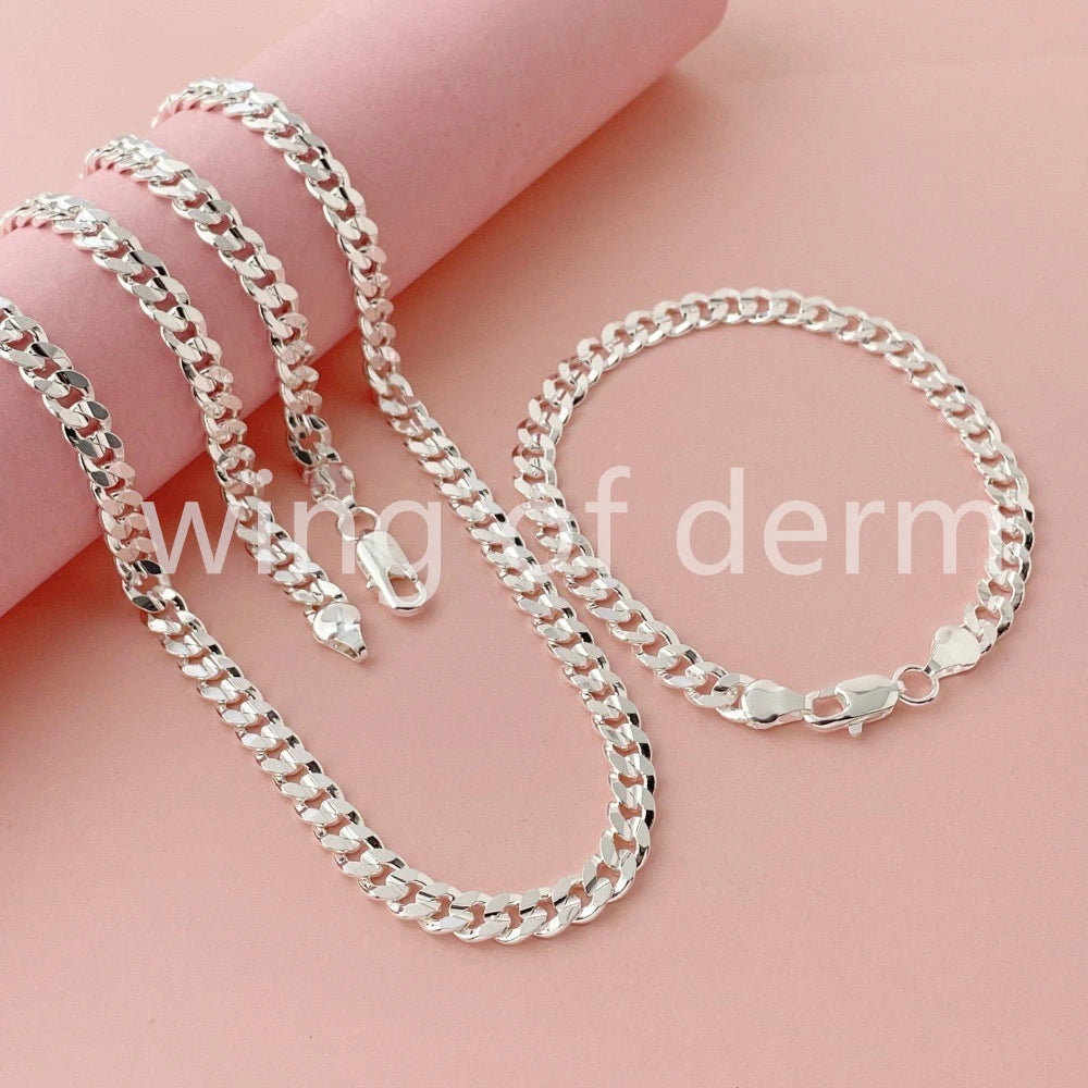 50–60cm 925 Sterling Silver 7mm Men's Cuban Sideways Necklace and Bracelet Set – Luxury Quality Jewelry Accessories