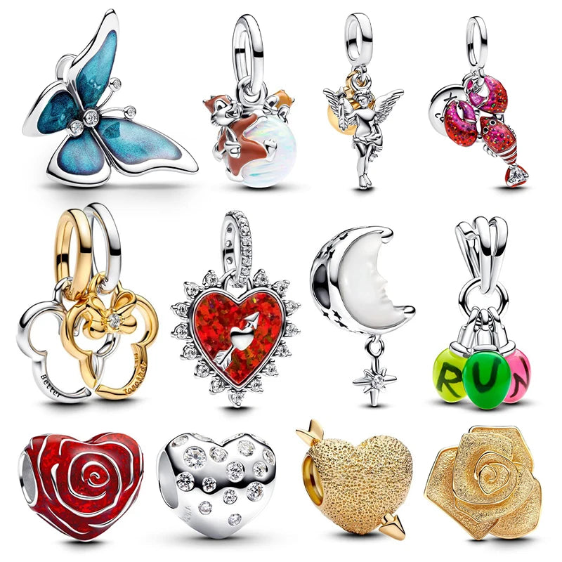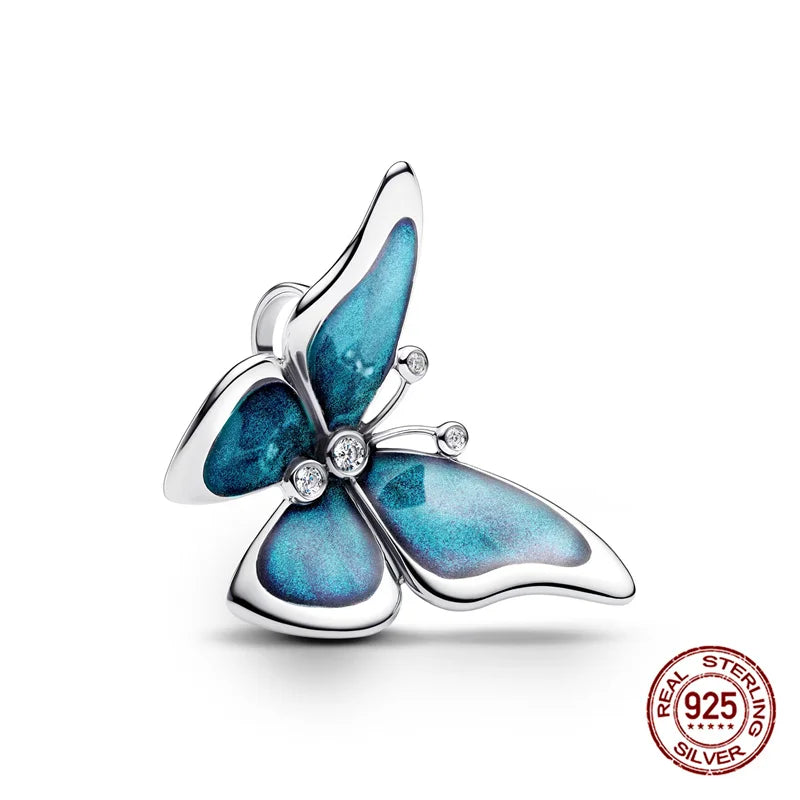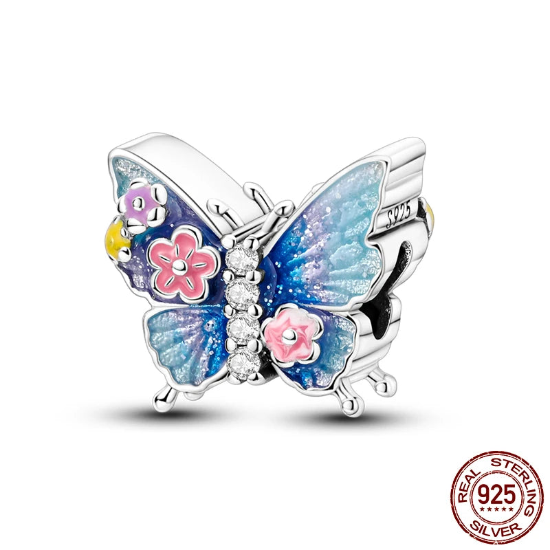 Hot Sale 925 Silver Blue Butterfly and Puppy Charms Beads Fits 3mm Original Bracelet Necklace Women DIY Fine Jewelry Gifts