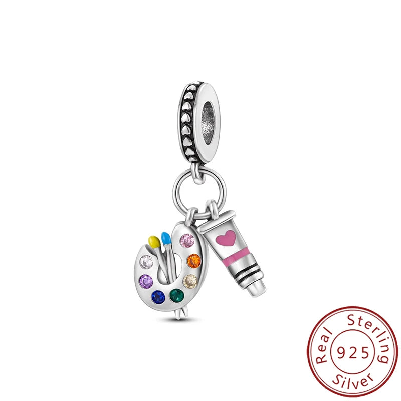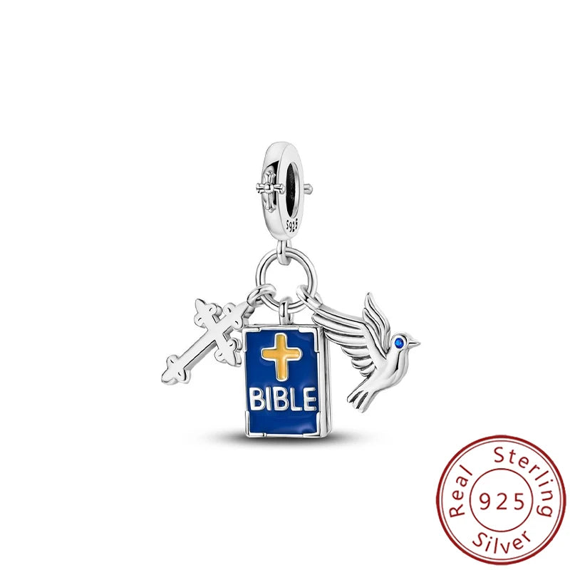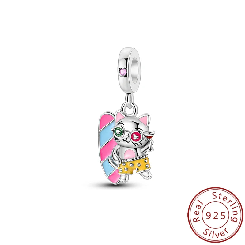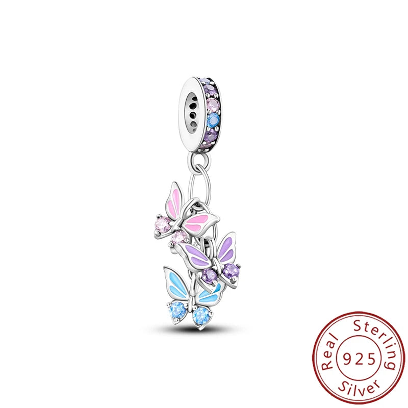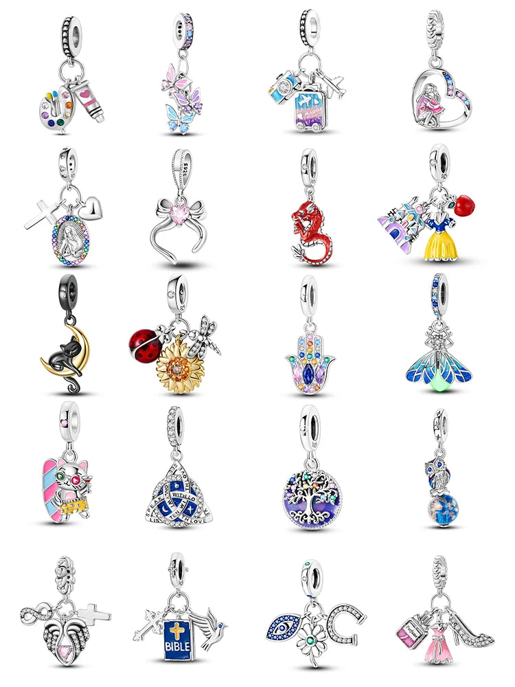 New 925 Pure Silver Angel Wings Heart Little Bird Black Swan Owl Sunflower Pendant Fits Original Bracelet Necklace Jewelry