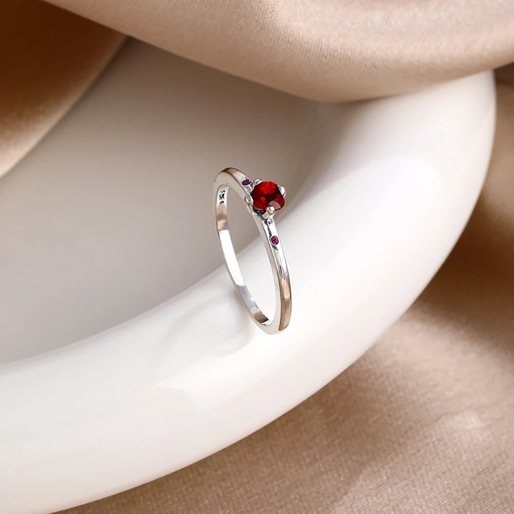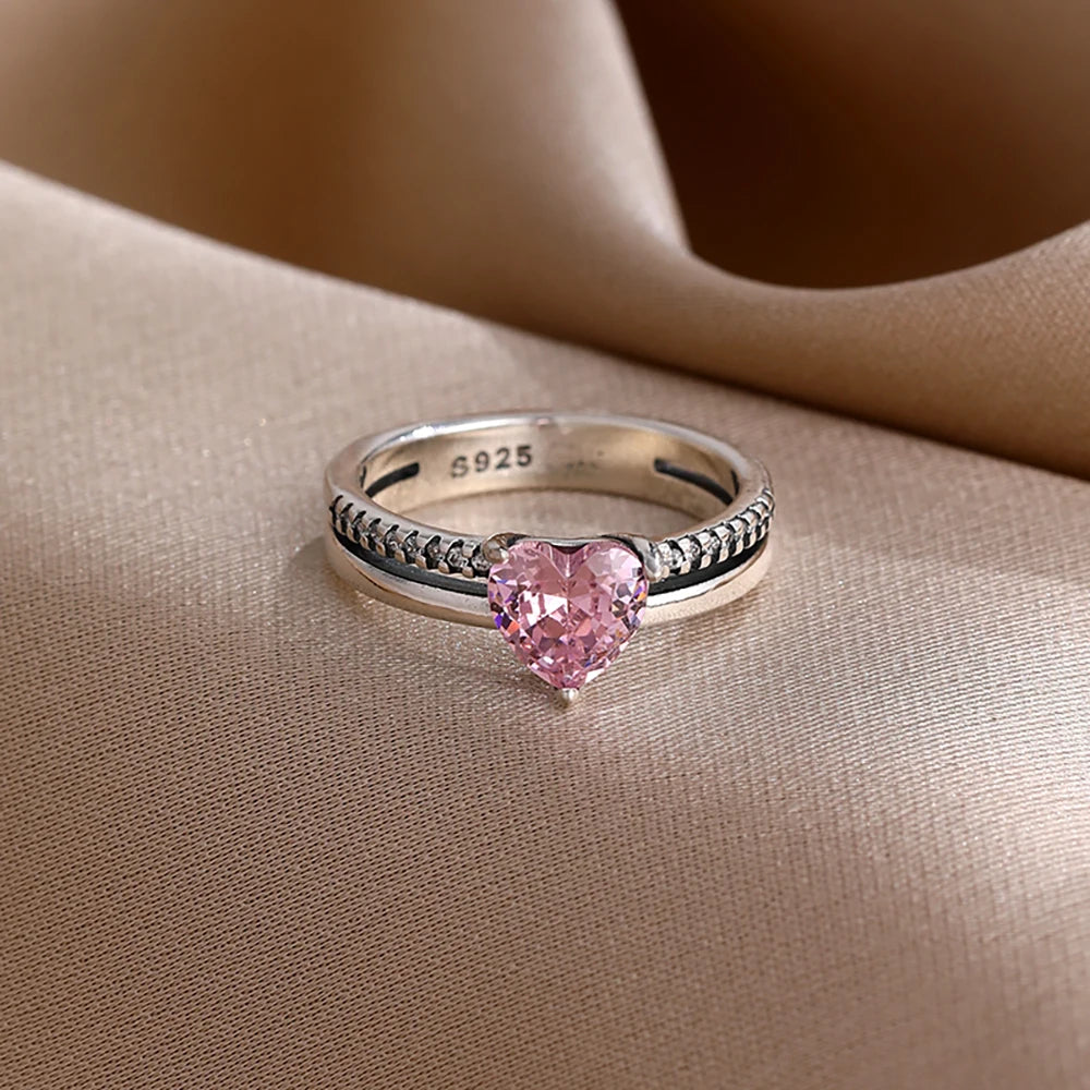 Valentine’s Day Gift Pink Bow and Red Heart 925 Silver Elegant Ring – Exquisite Women’s Jewelry for Wedding and Party