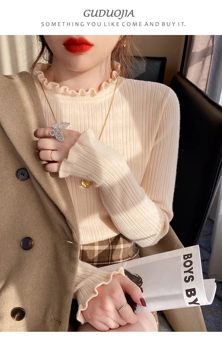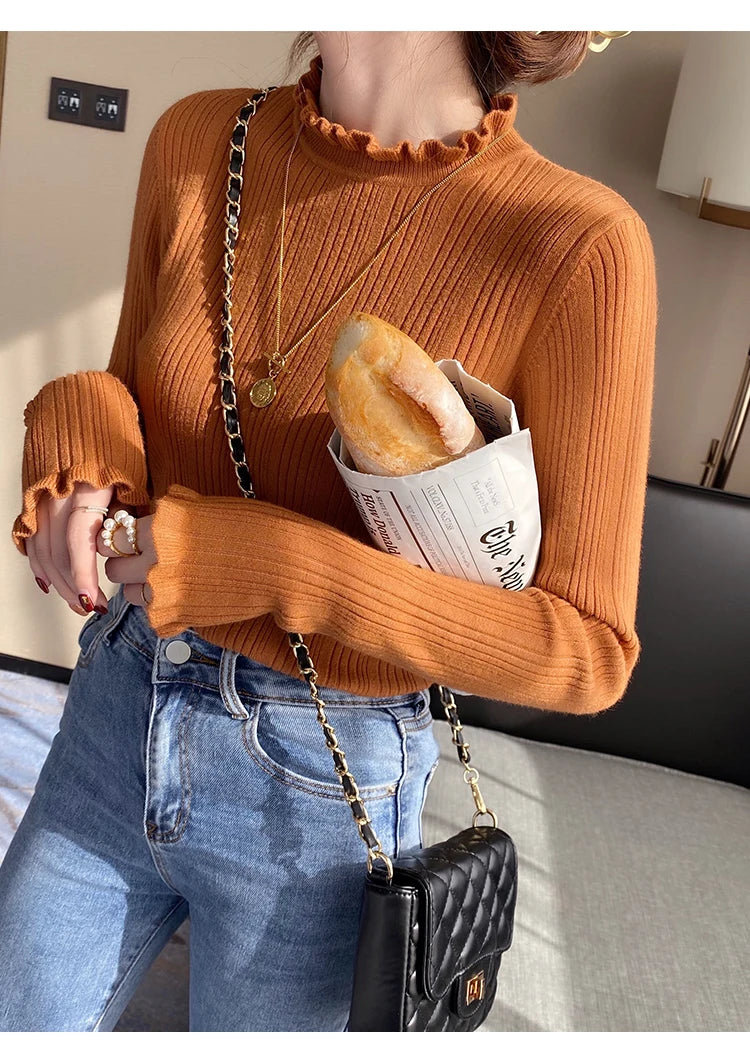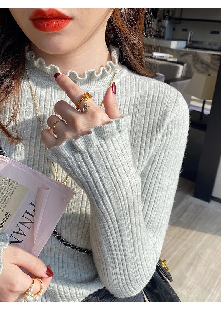 2026 Turtleneck Sweater Women Fashion New Binding Stretch Knitted Pullover Long Sleeve Bottoming Sweater