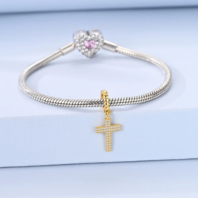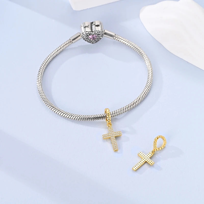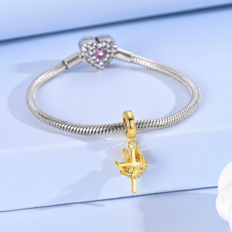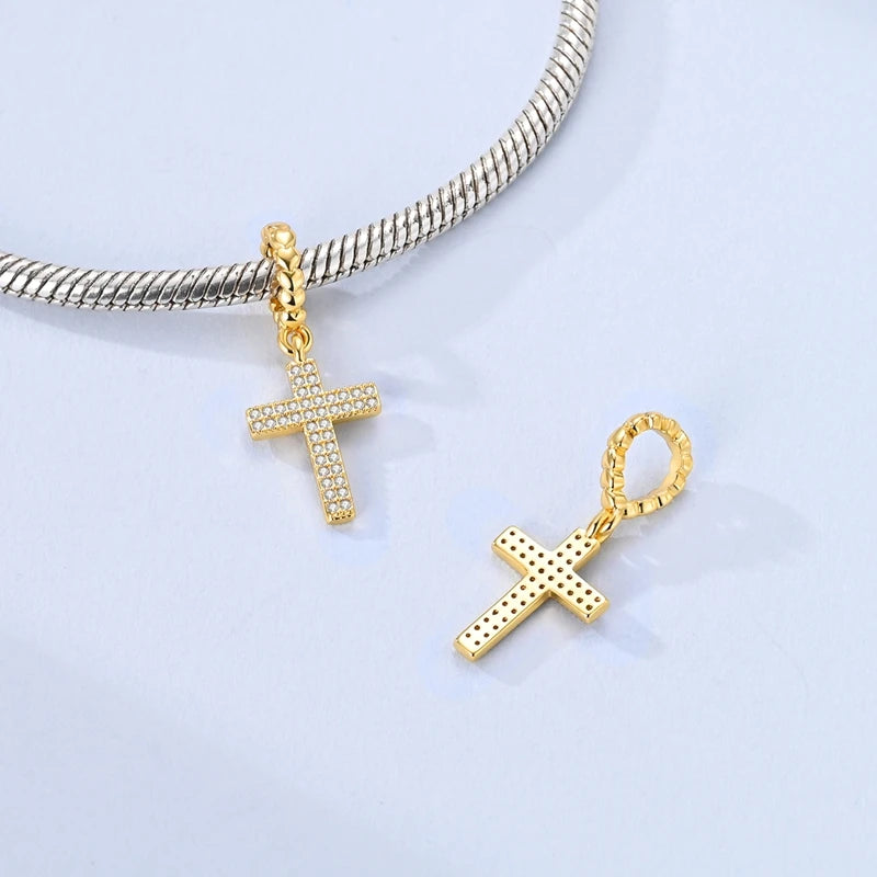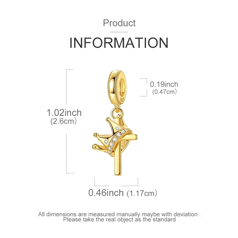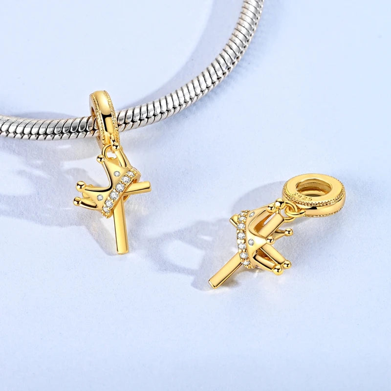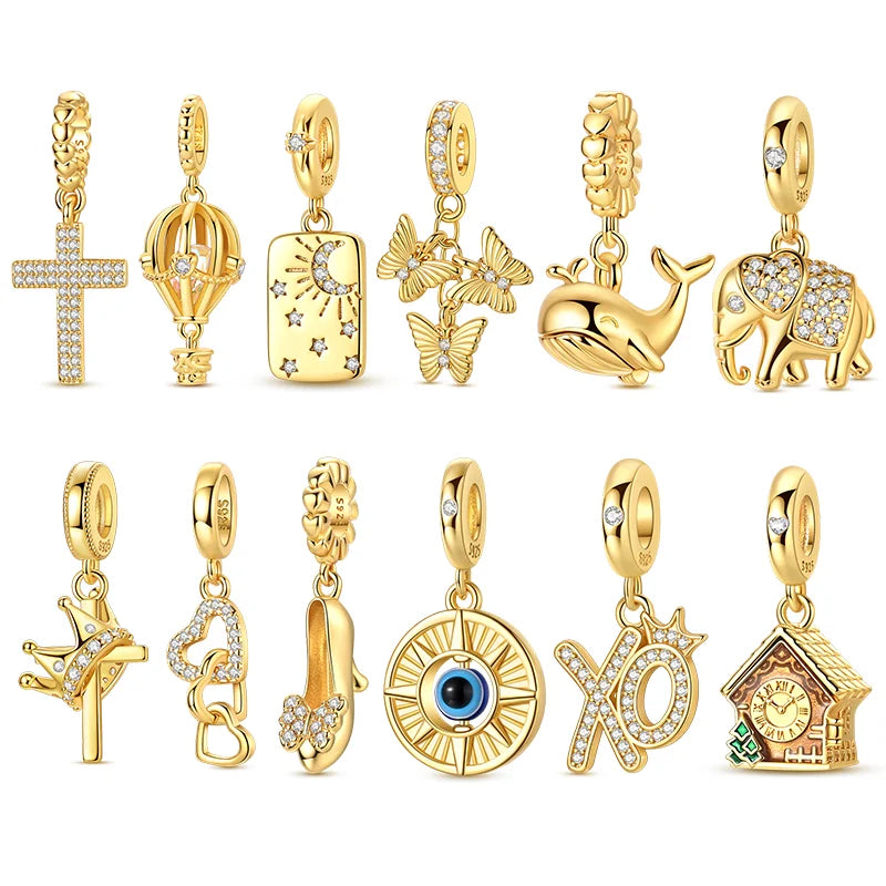 925 Silver Charm Beads Golden Cross Crown Whale Butterfly Pendant | Fits Original Bracelet & Necklace | Women DIY Jewelry Gifts