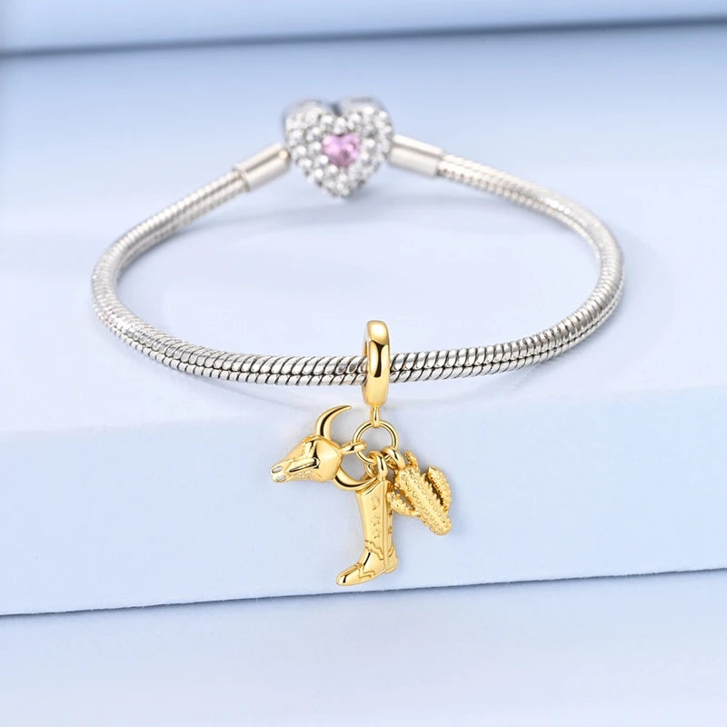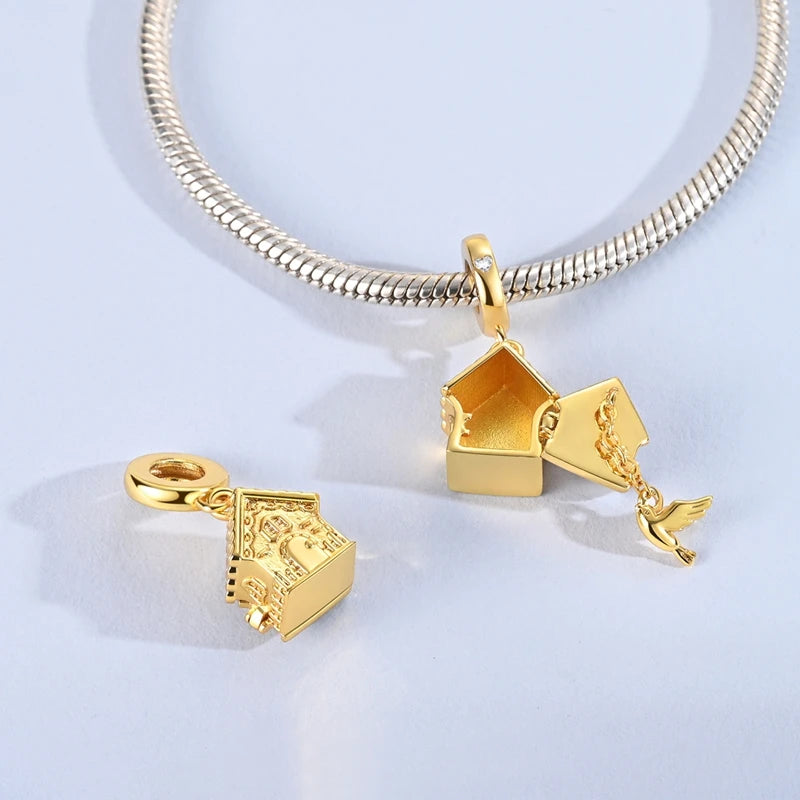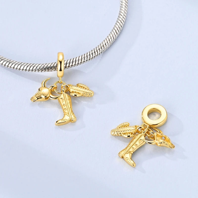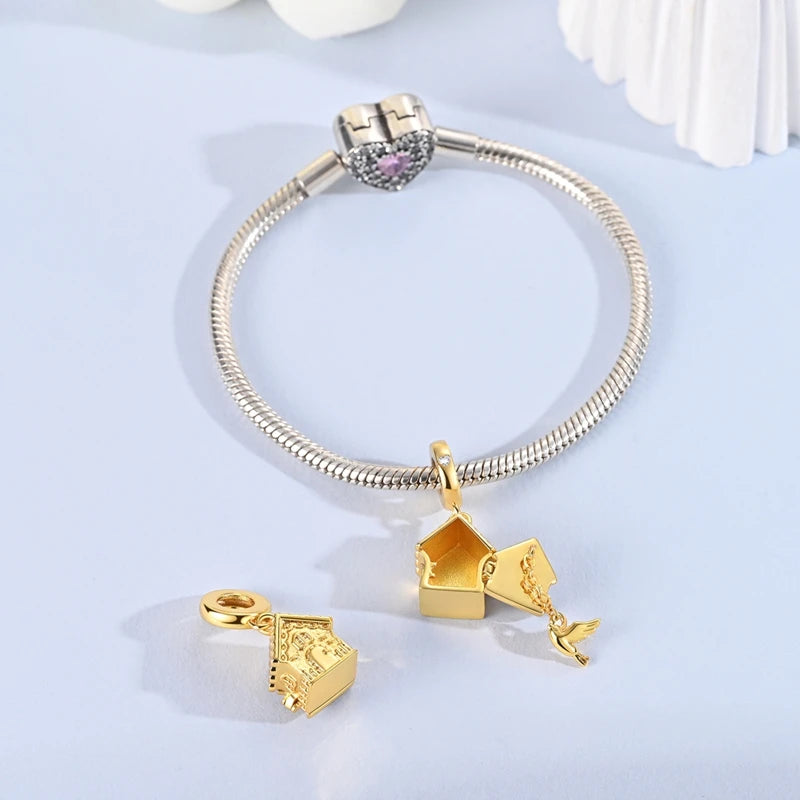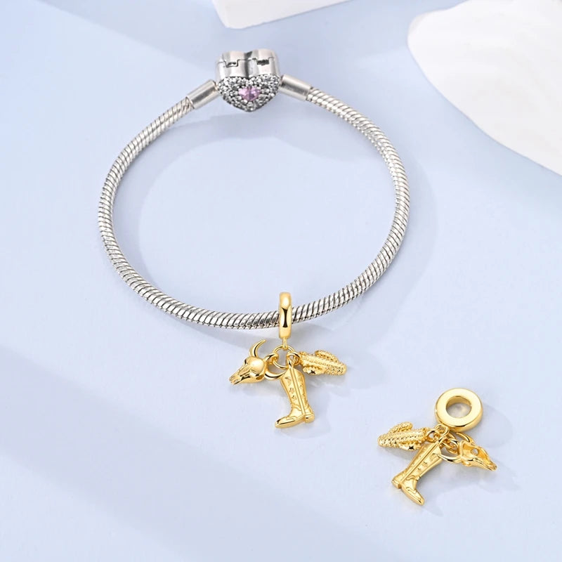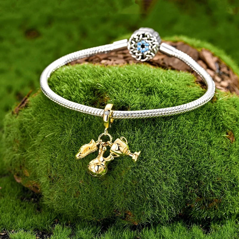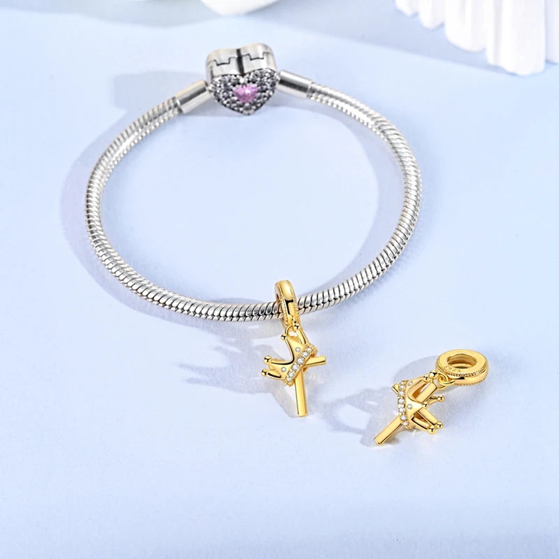 925 Silver Charm Beads Golden Cross Crown Whale Butterfly Pendant | Fits Original Bracelet & Necklace | Women DIY Jewelry Gifts