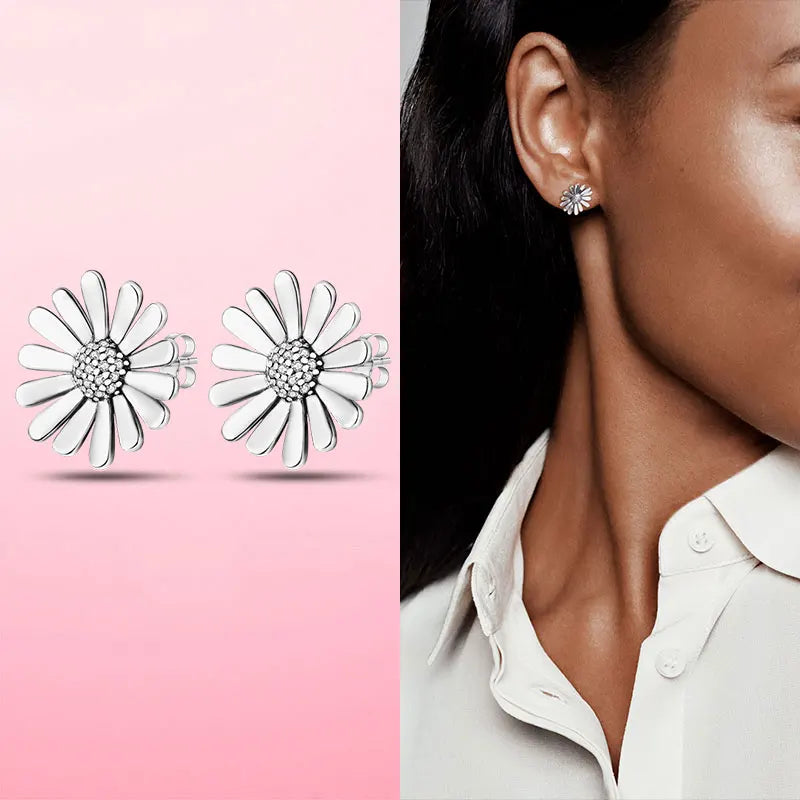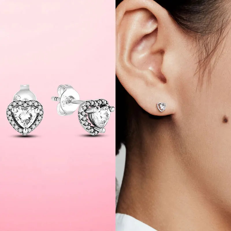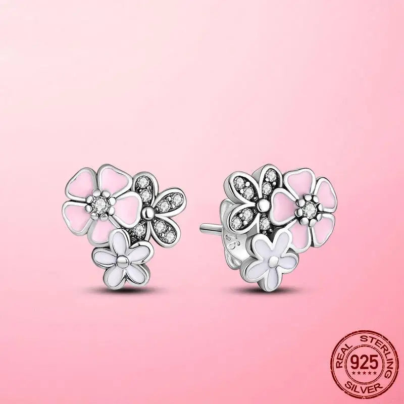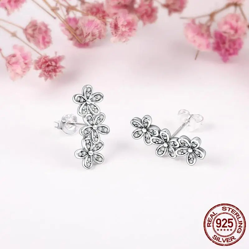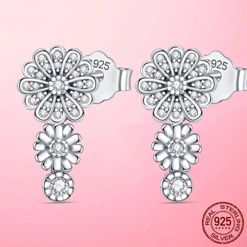 925 Sterling Silver Heart CZ Daisy Flower Trio Stud Earrings | Women’s Cubic Zircon Fashion Jewelry