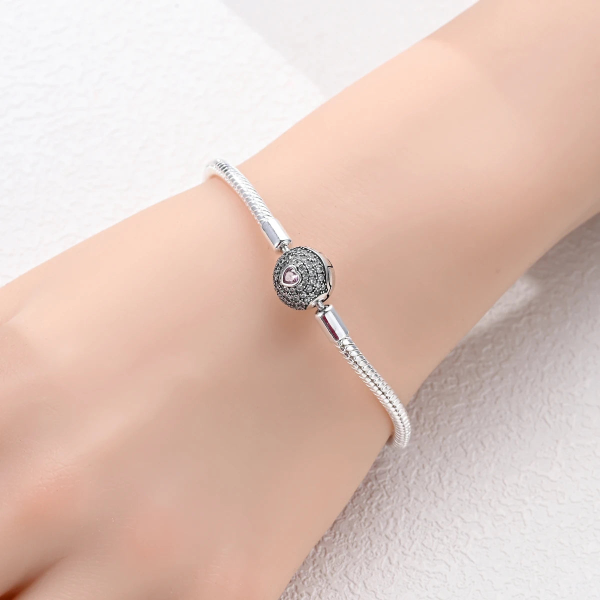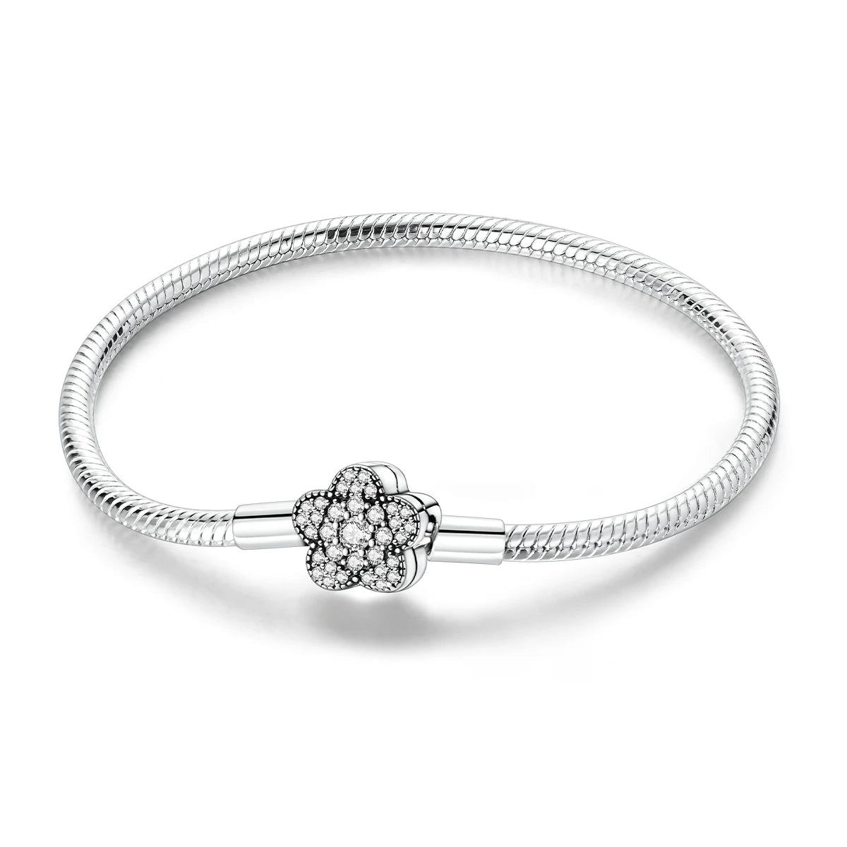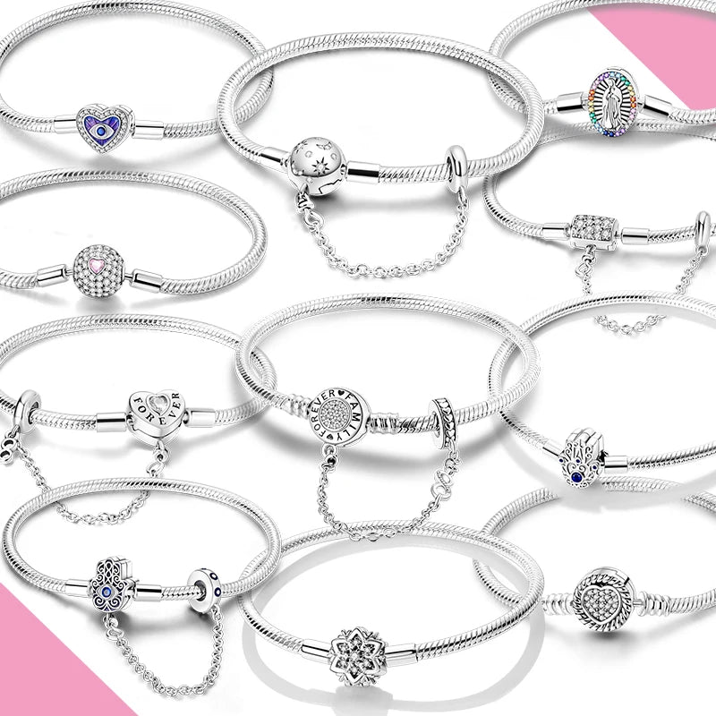 925 Silver Snake Chain Clasp Bead Bracelet | Fits Charms | DIY Jewelry for Women