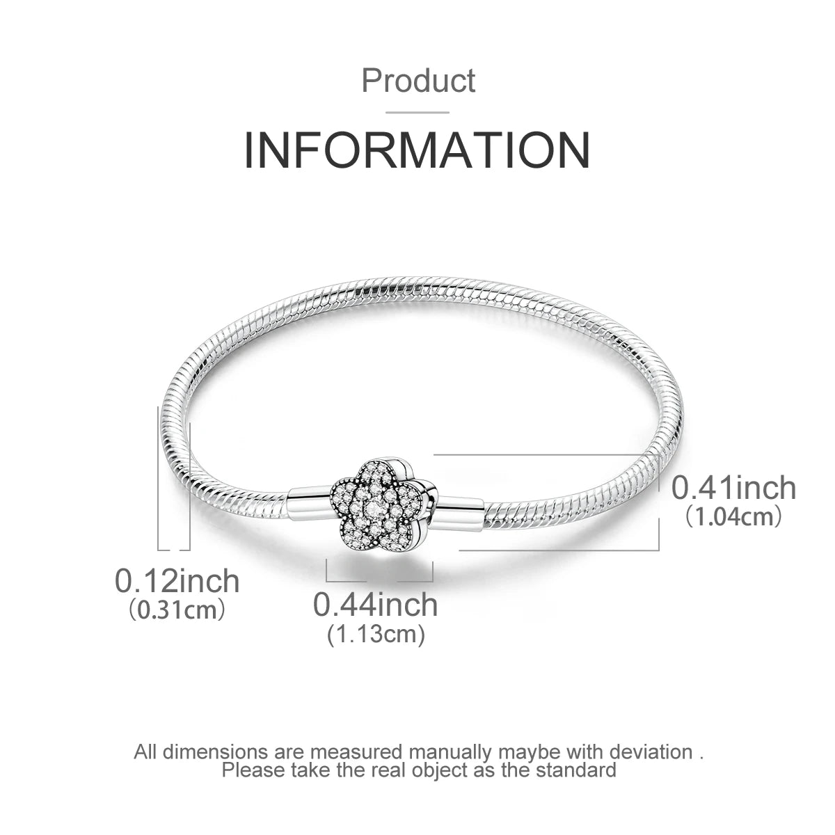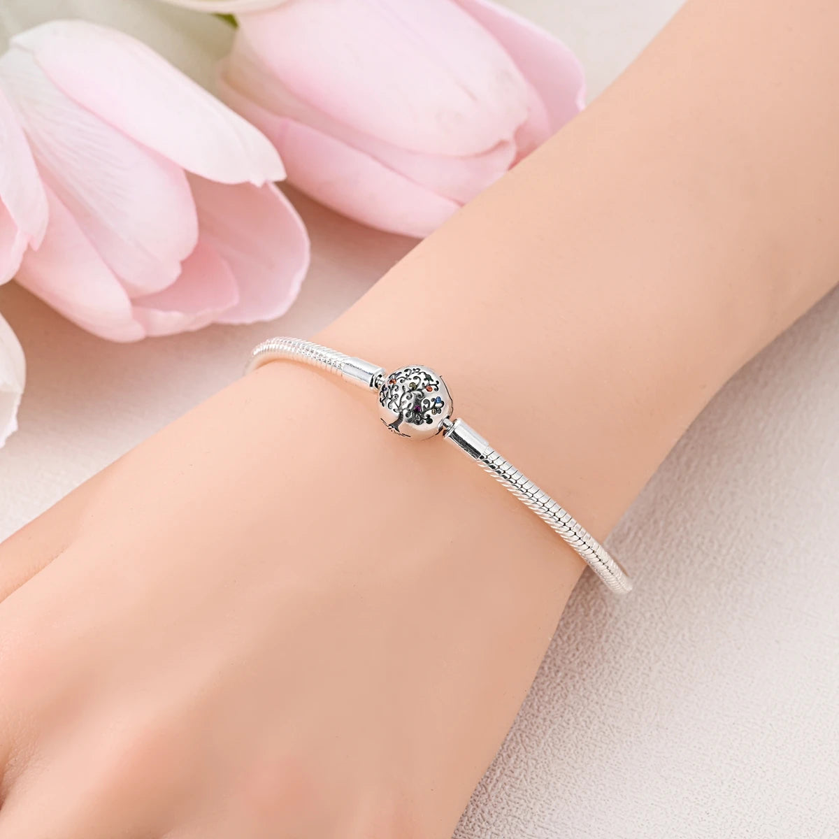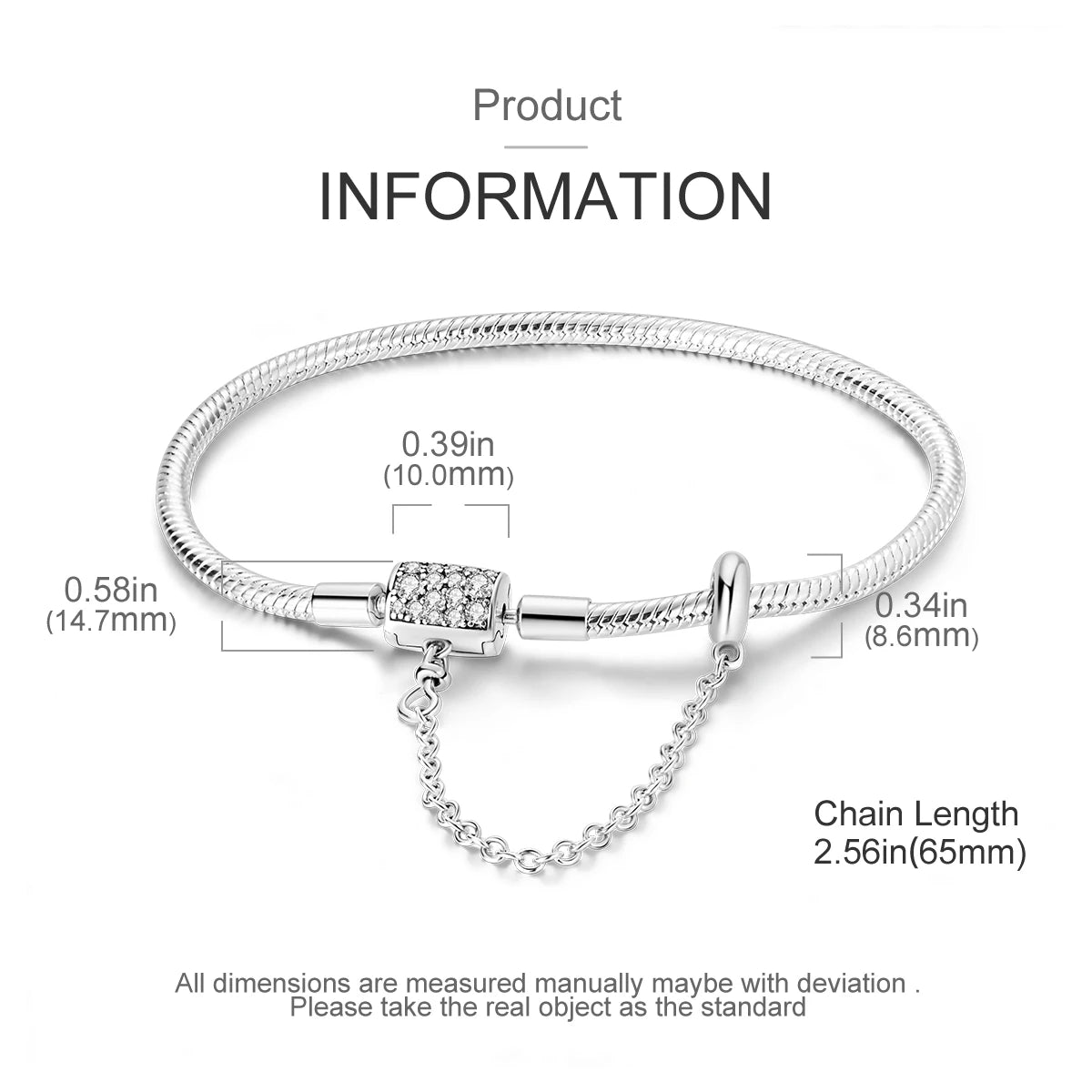 925 Silver Snake Chain Clasp Bead Bracelet | Fits Charms | DIY Jewelry for Women