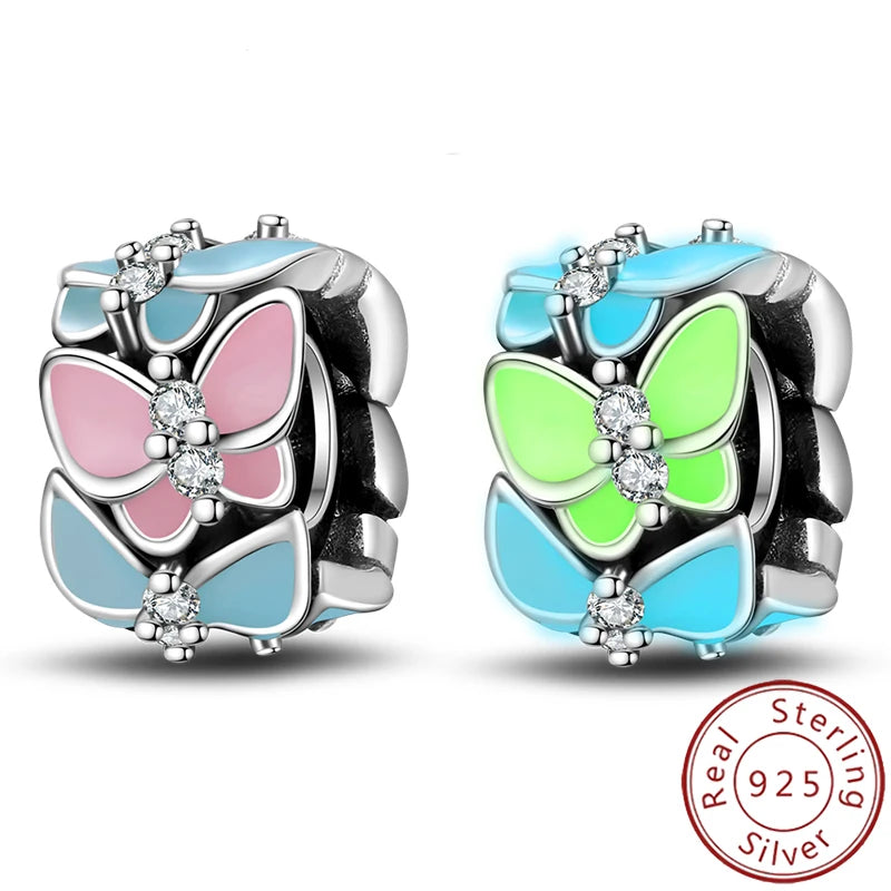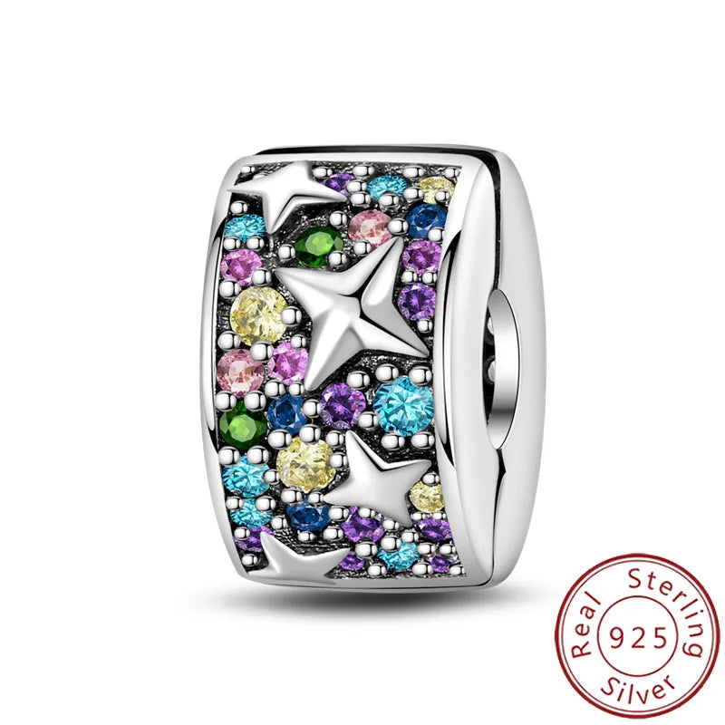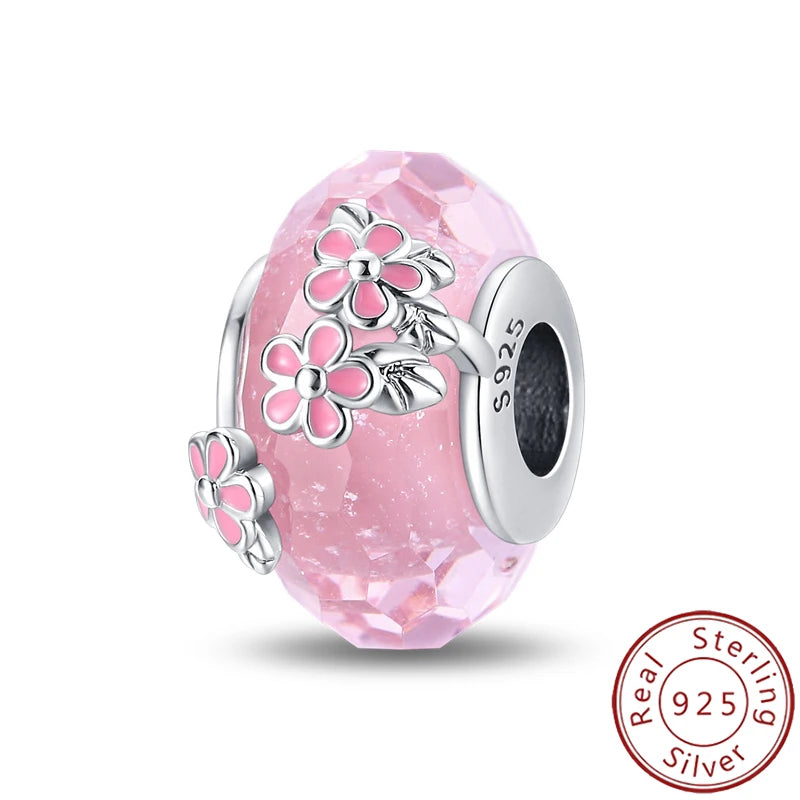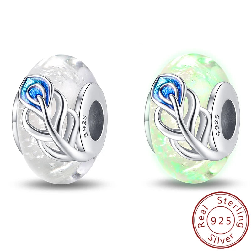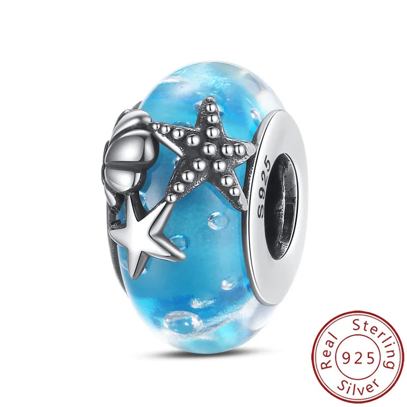 Fashion 925 Pure Silver Colorful Round Rainbow Murano Glass Charm Pendant Beads β Suitable for DIY Bracelet Women Jewelry