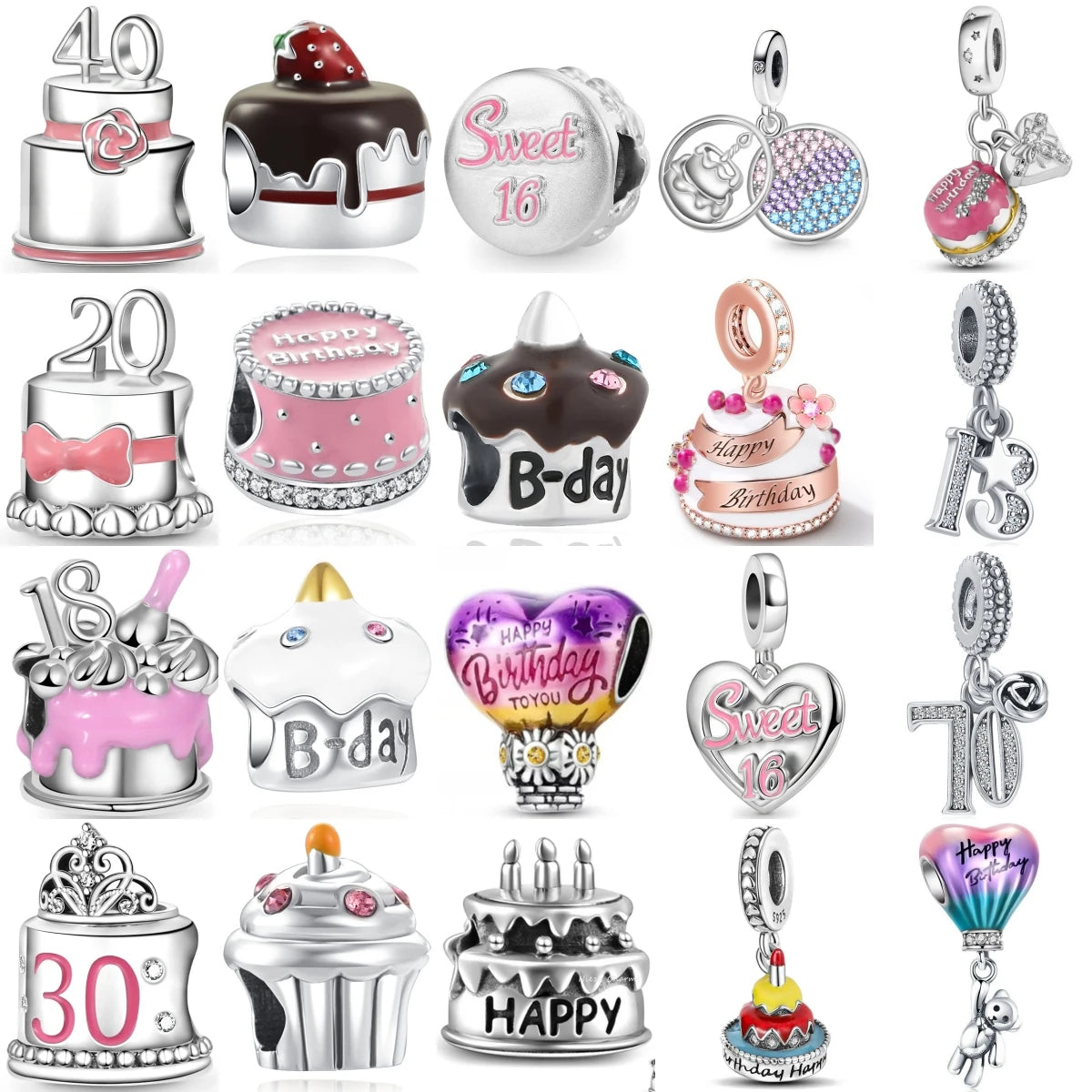 Fashion 925 Sterling Silver Birthday Series Charm β Birthday Cake & Hot Air Balloon Pendant DIY Fits Original Bracelet Jewelry Gift