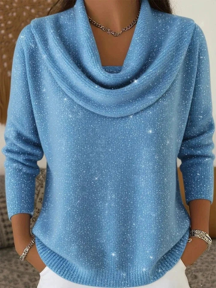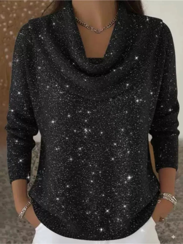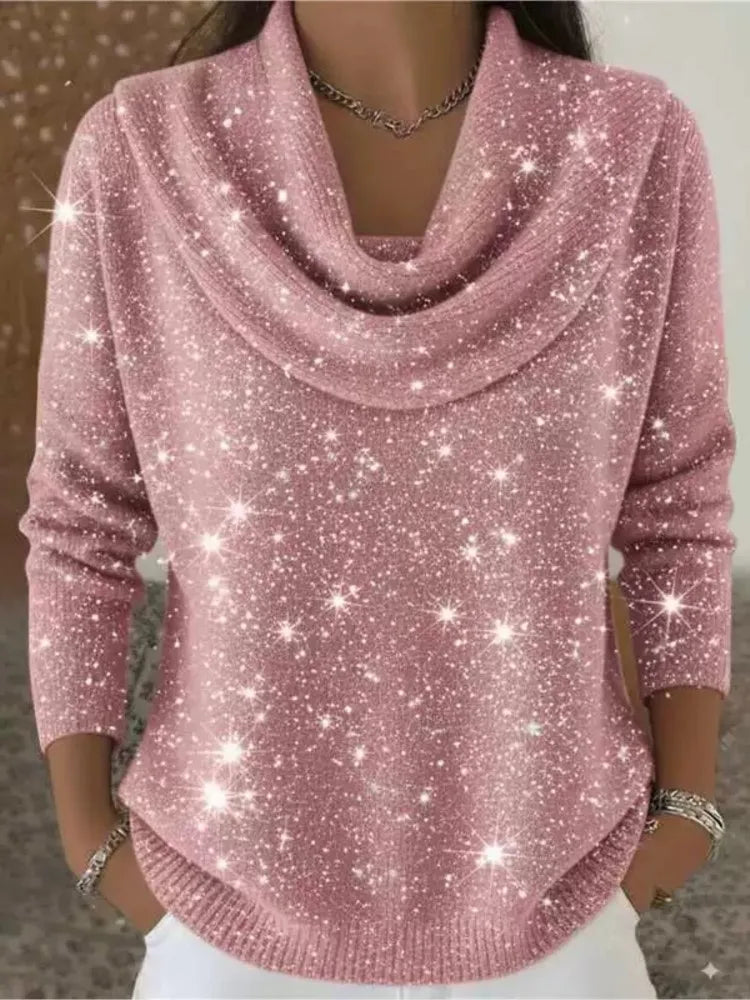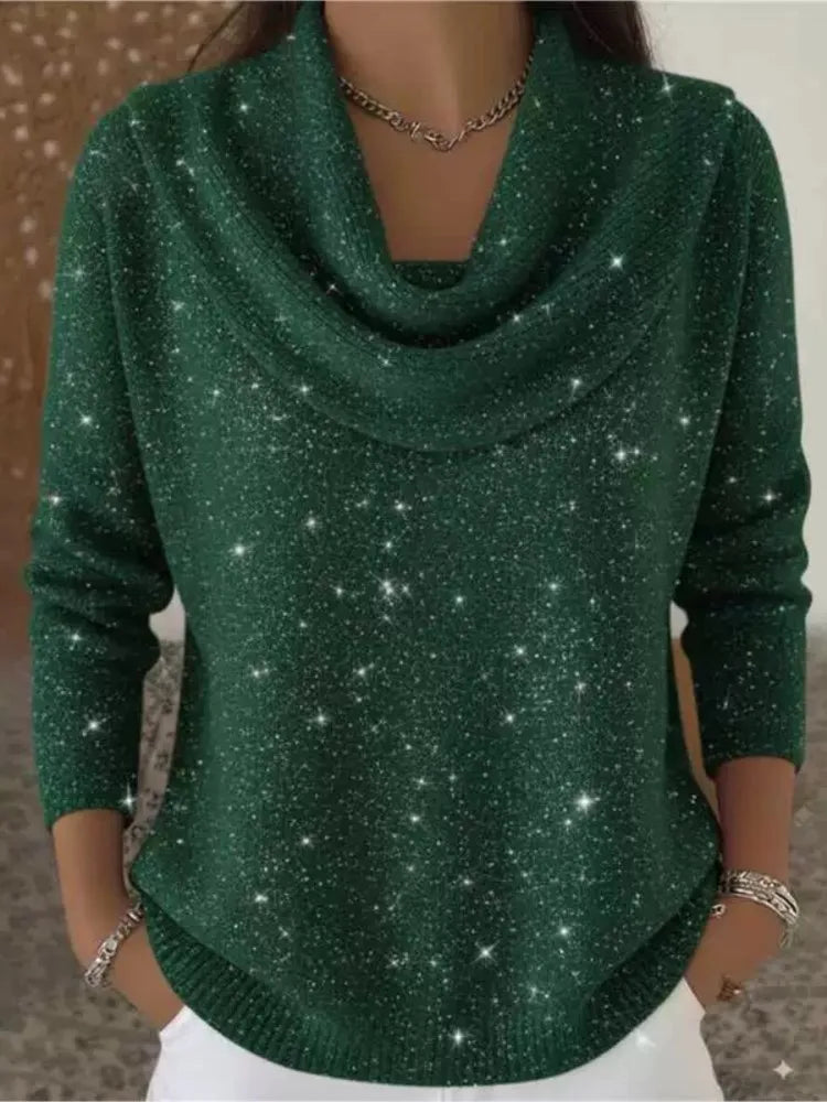 Fashion Sequins Knit Sweater Women Casual Pile Collar Long Sleeve Pullover Holiday Party Top