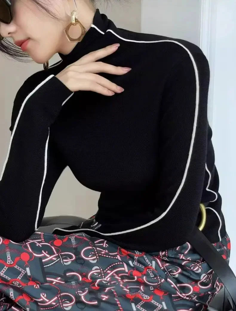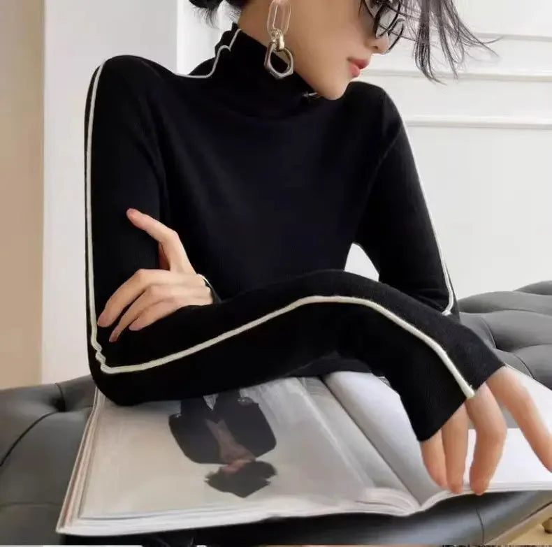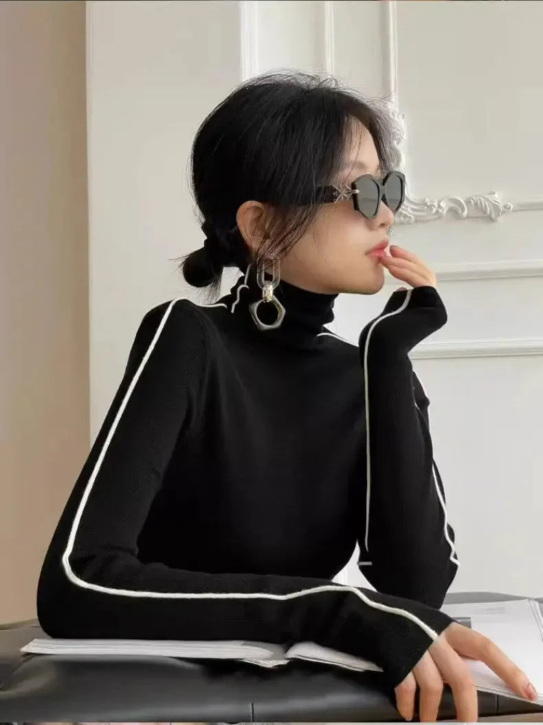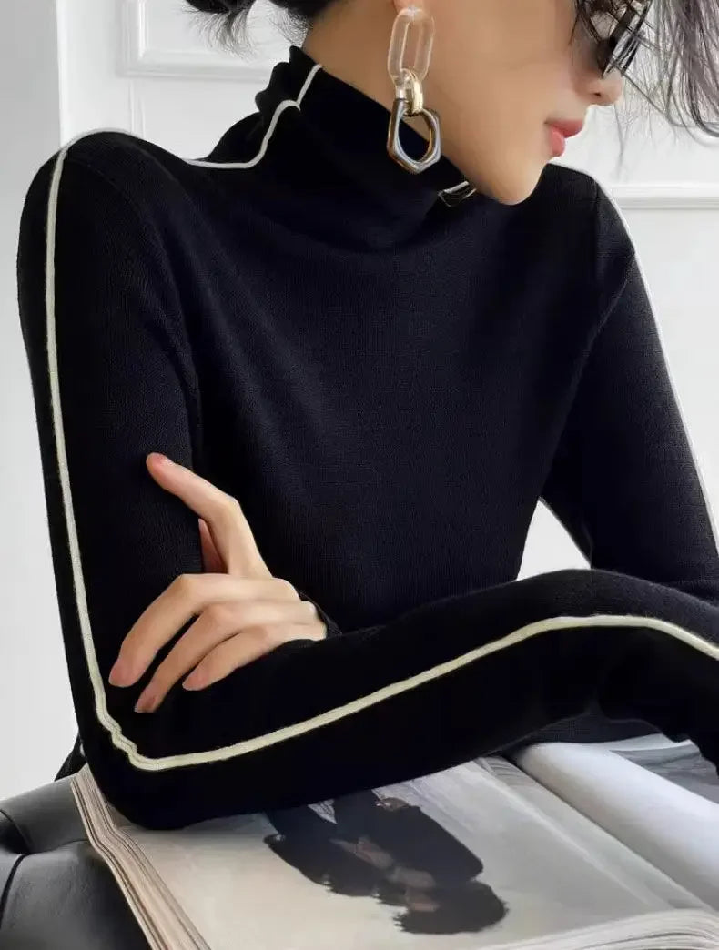 Fashion Turtleneck Pullover Women 2023 New Autumn Winter Slim Fit Long Sleeve Elegant Office Sweater Black White