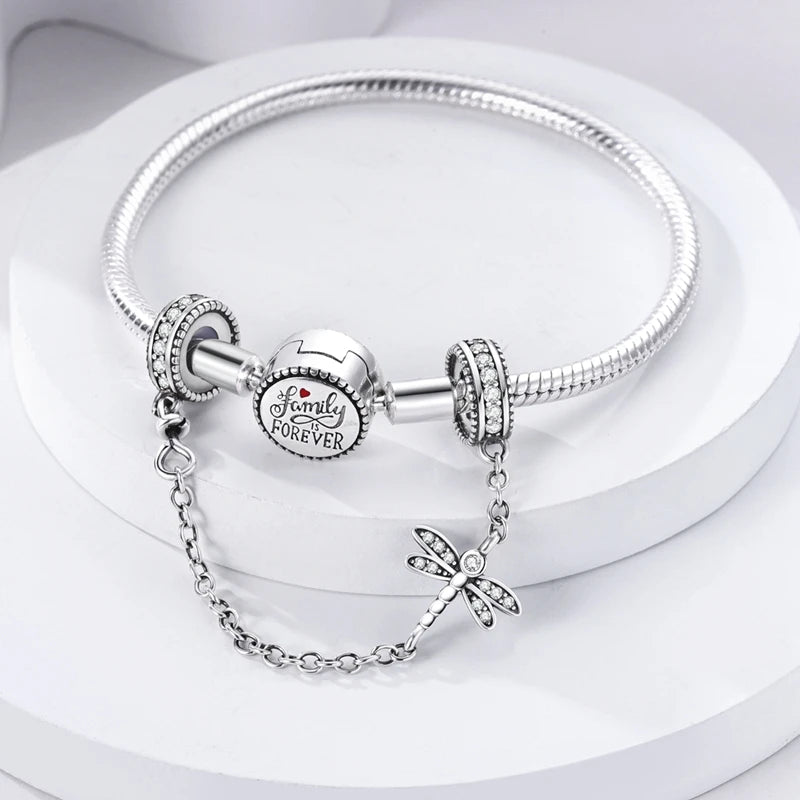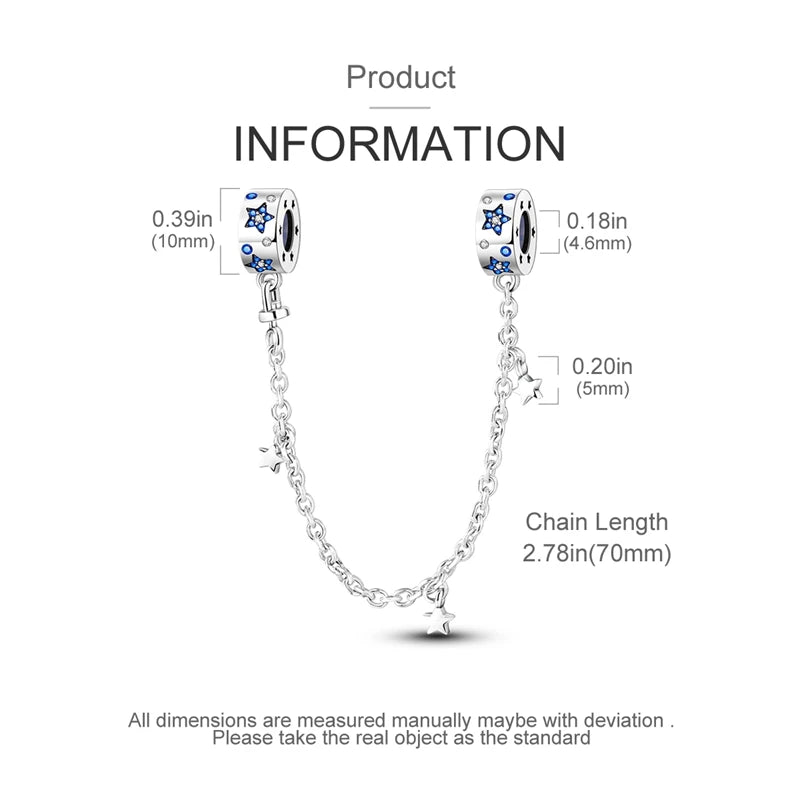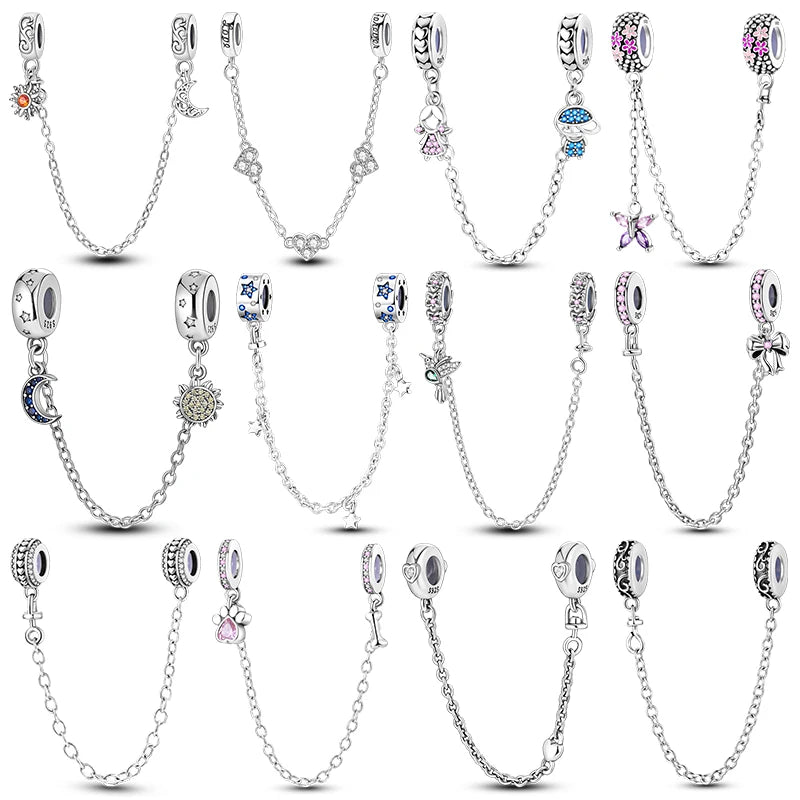 925 Silver Safety Chain Charm Moon Star Leaf Clip | Fits Original Bracelet | Luxury DIY Jewelry for Women & Girls