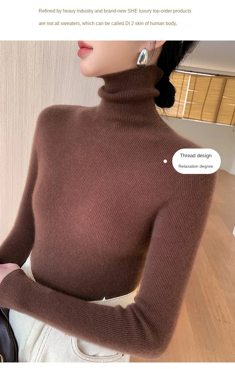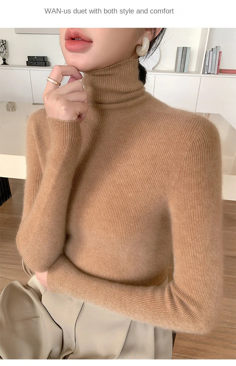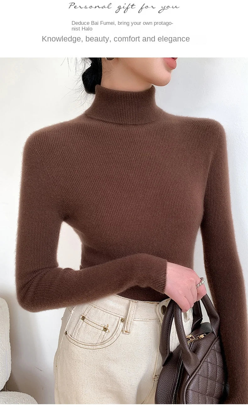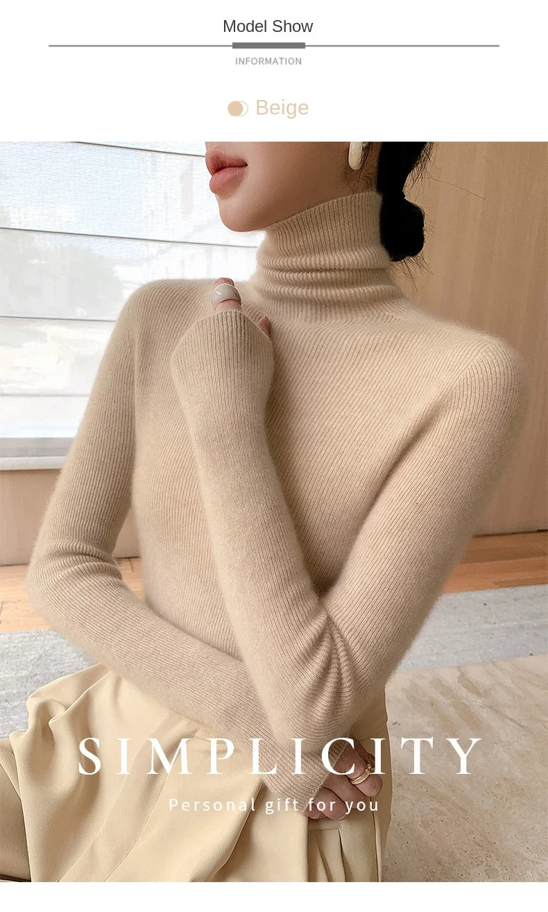New Autumn Winter Women High Neck Pullover Sweater Korean Style Fashion Knitted Sweater HY138