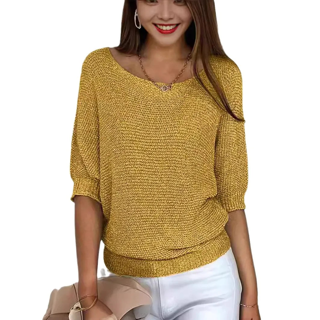 Women O-Neck 3/4 Sleeve Knitwear Sweater Spring Autumn Solid Casual Loose Pullover Top
