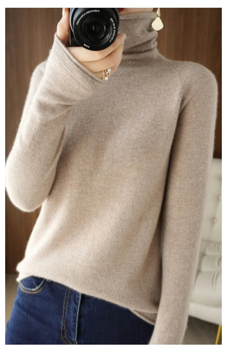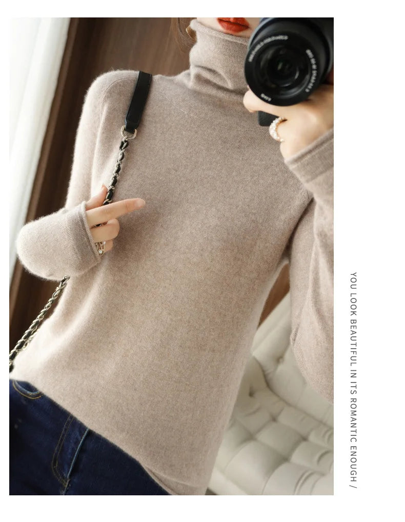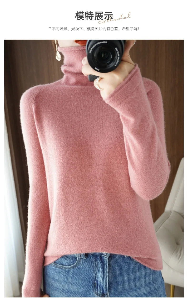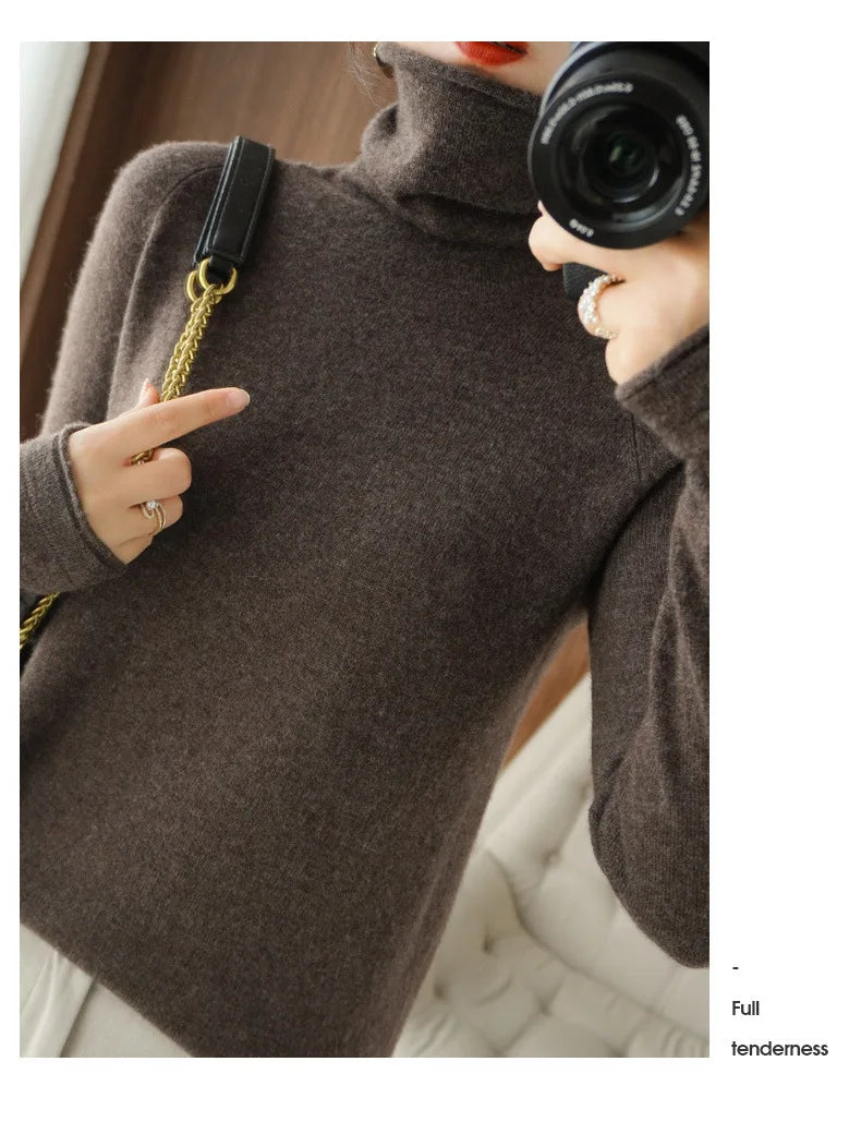 Women Winter Cashmere Turtleneck Sweater Korean Casual Solid Knitwear Brown Bottoming Pullover