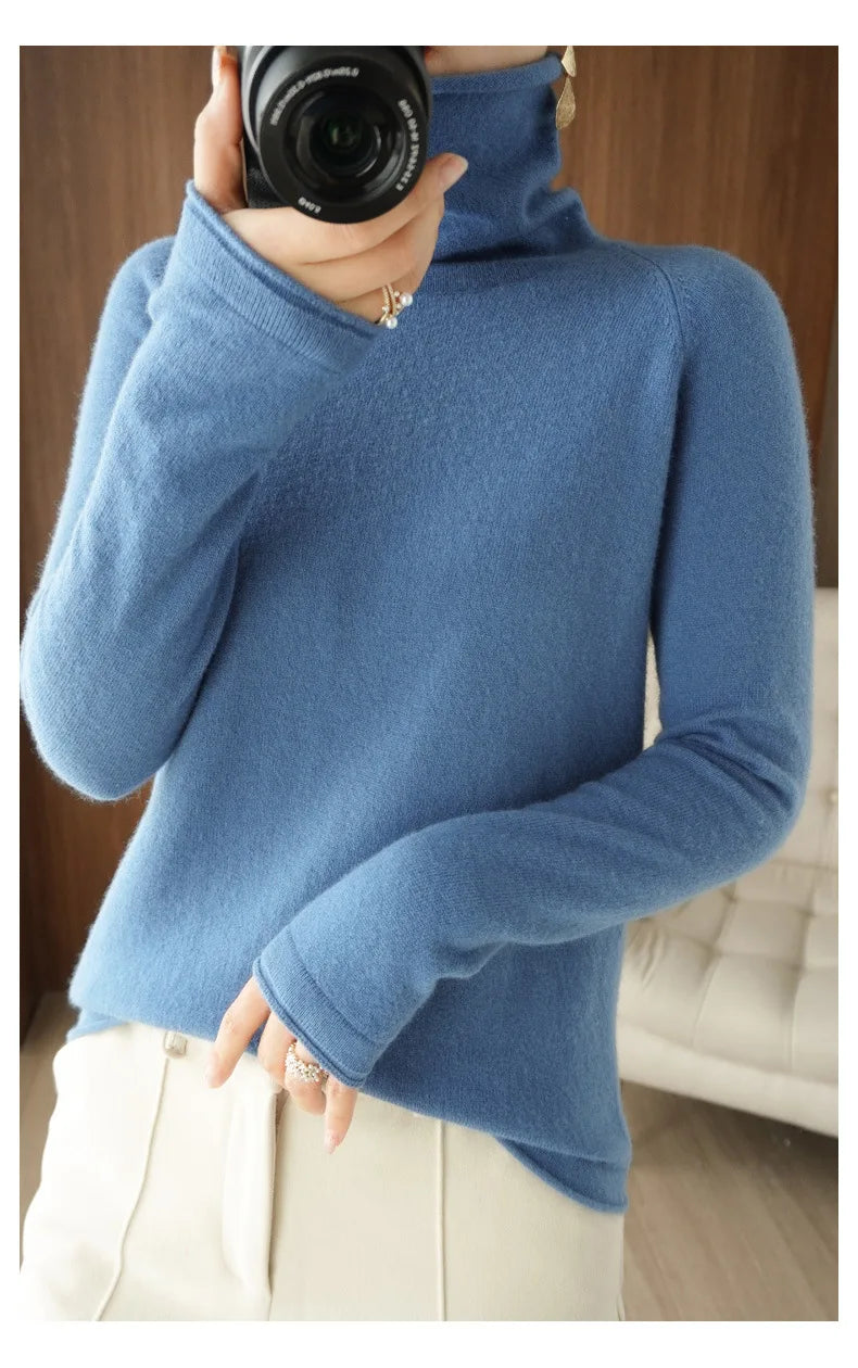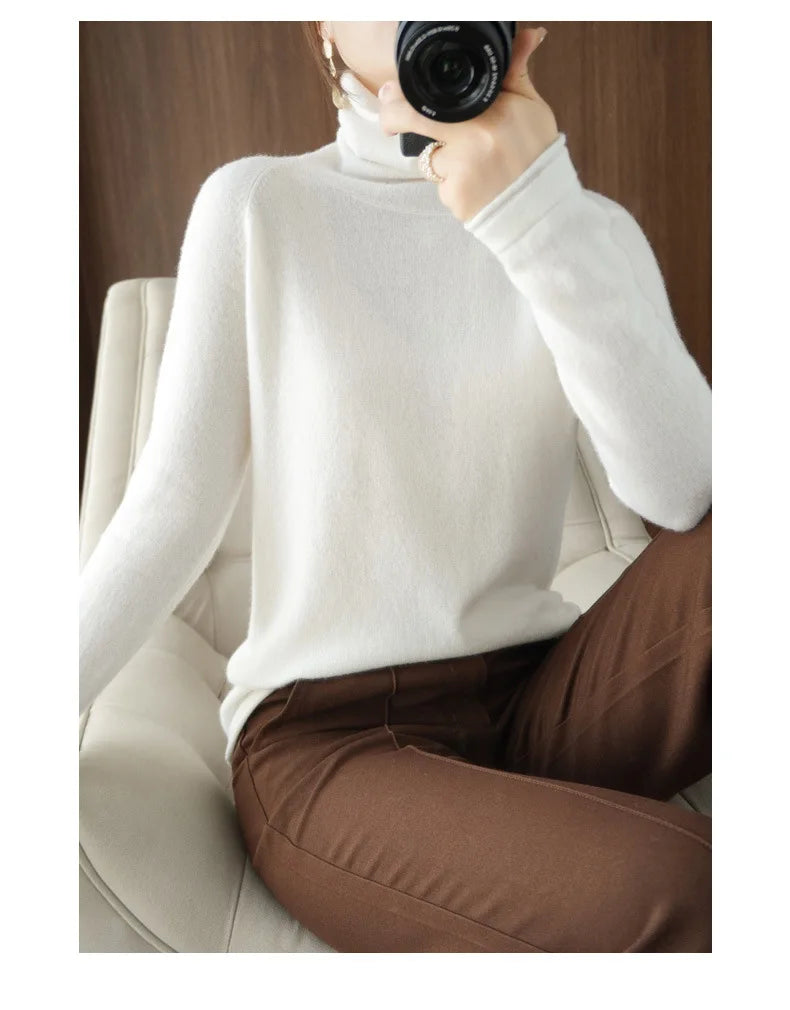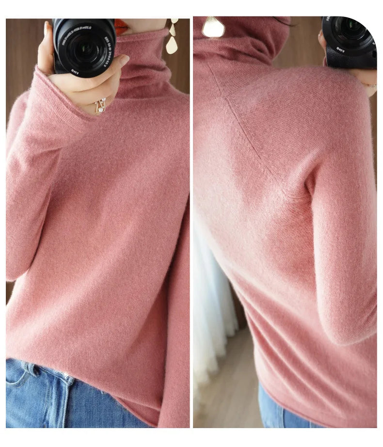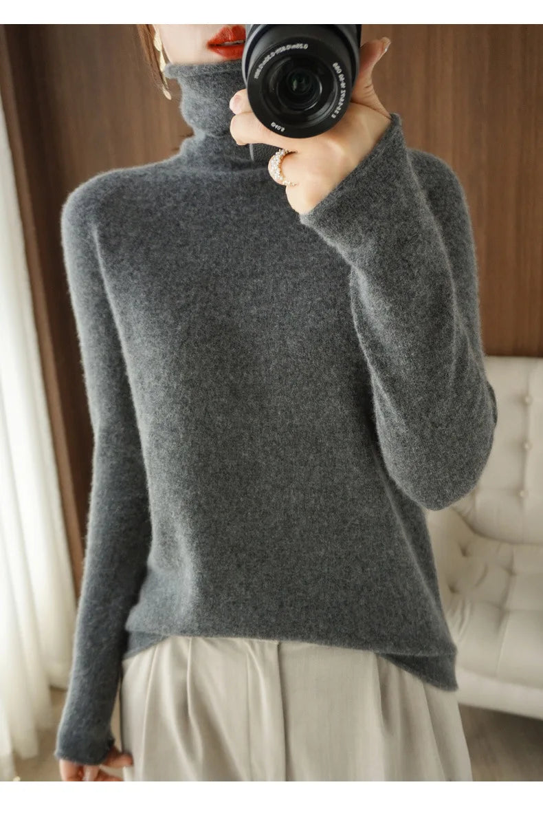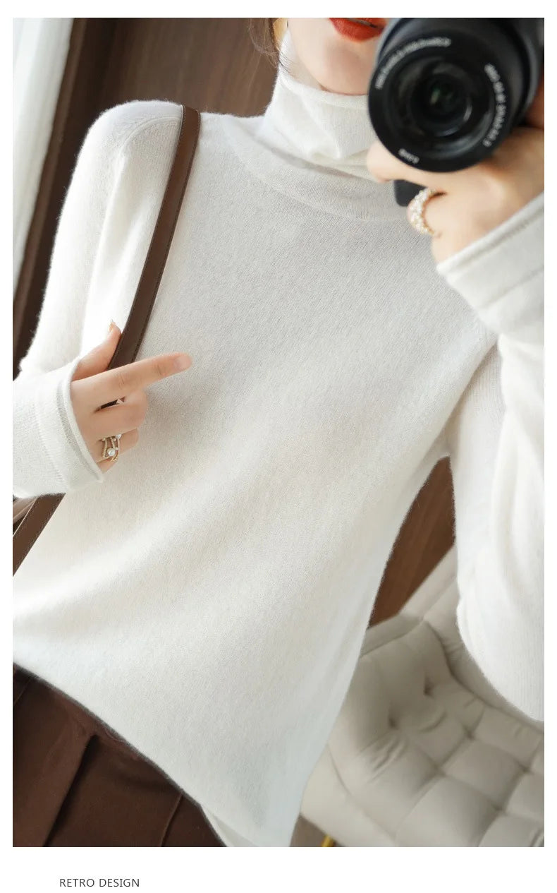 Women Winter Cashmere Turtleneck Sweater Korean Casual Solid Knitwear Brown Bottoming Pullover